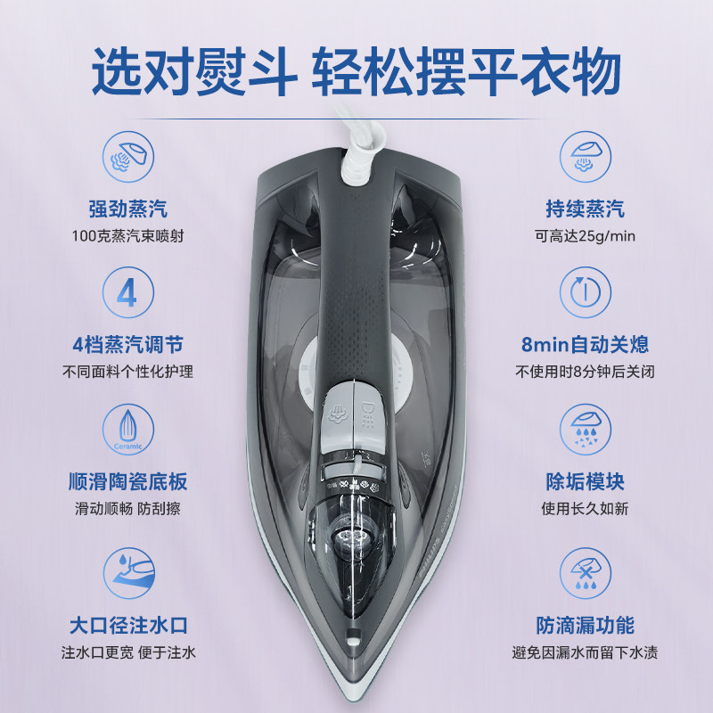 飞利浦电熨斗GC1758蒸汽电熨斗家用小型手持便携衣服熨烫机ST3031