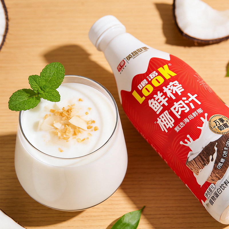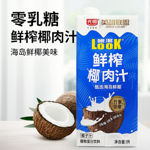 光明噜渴LOOK鲜榨椰肉汁1L椰子汁椰奶瓶装 植物蛋白饮料饮品整箱