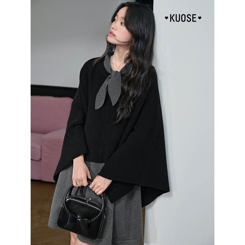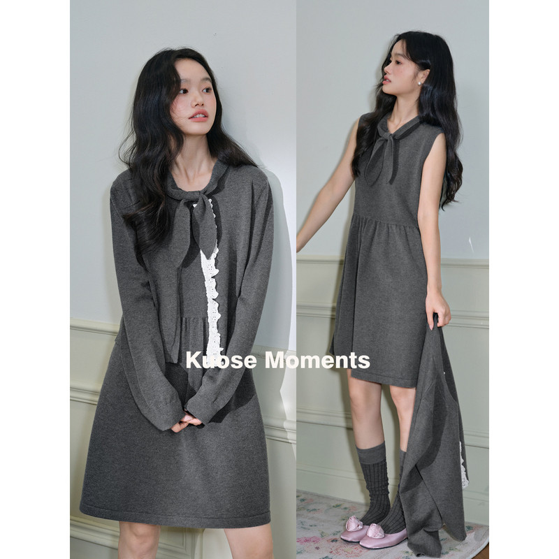 女针织上衣短裙子 25秋冬新款 阔色灰色开衫 毛衣背心连衣裙两件套装