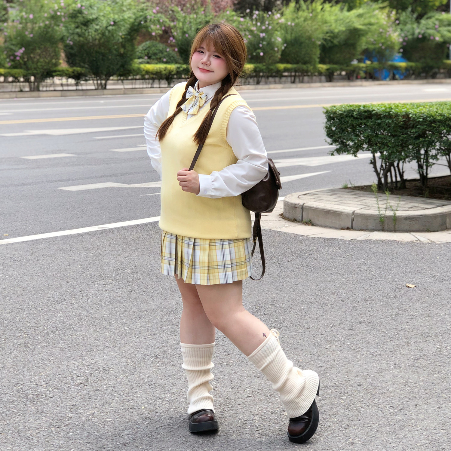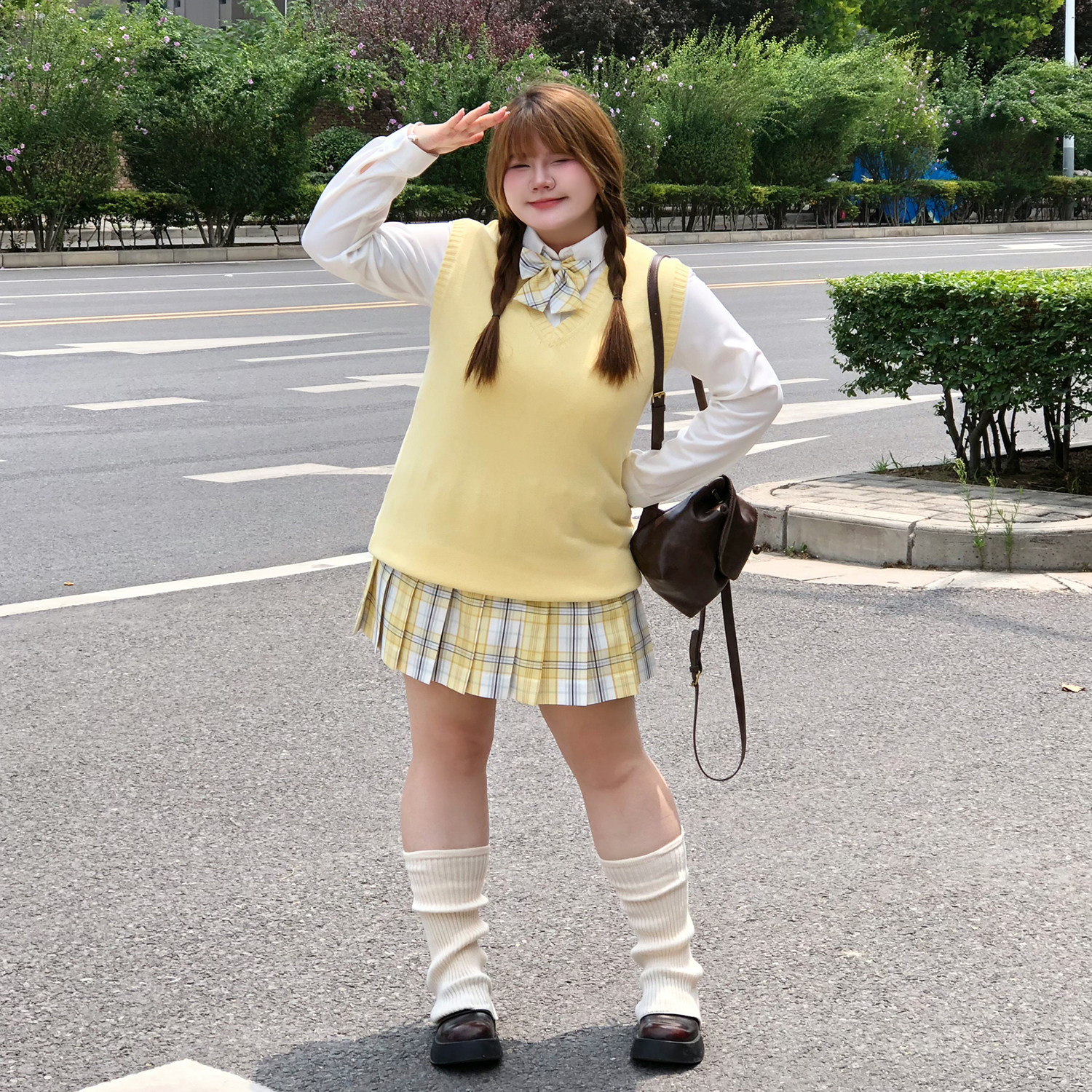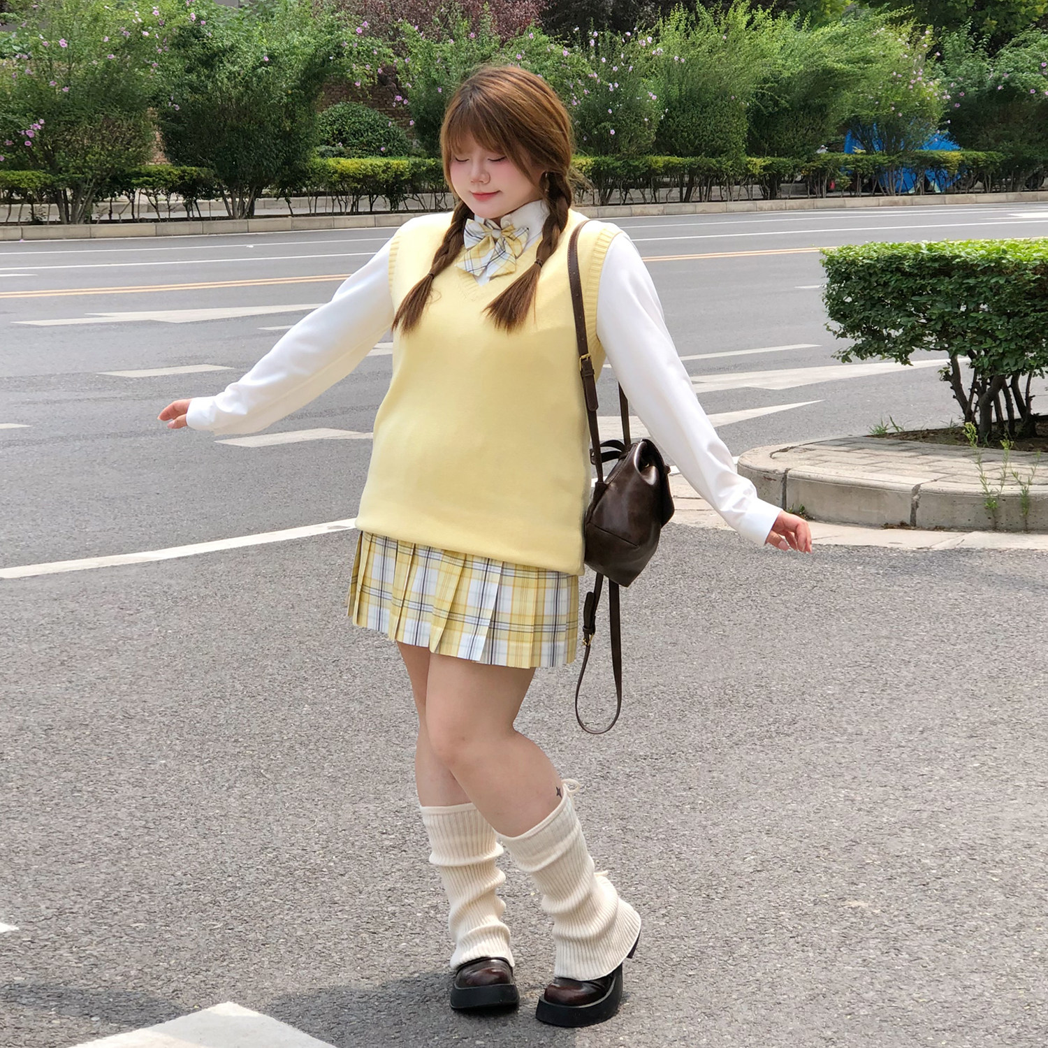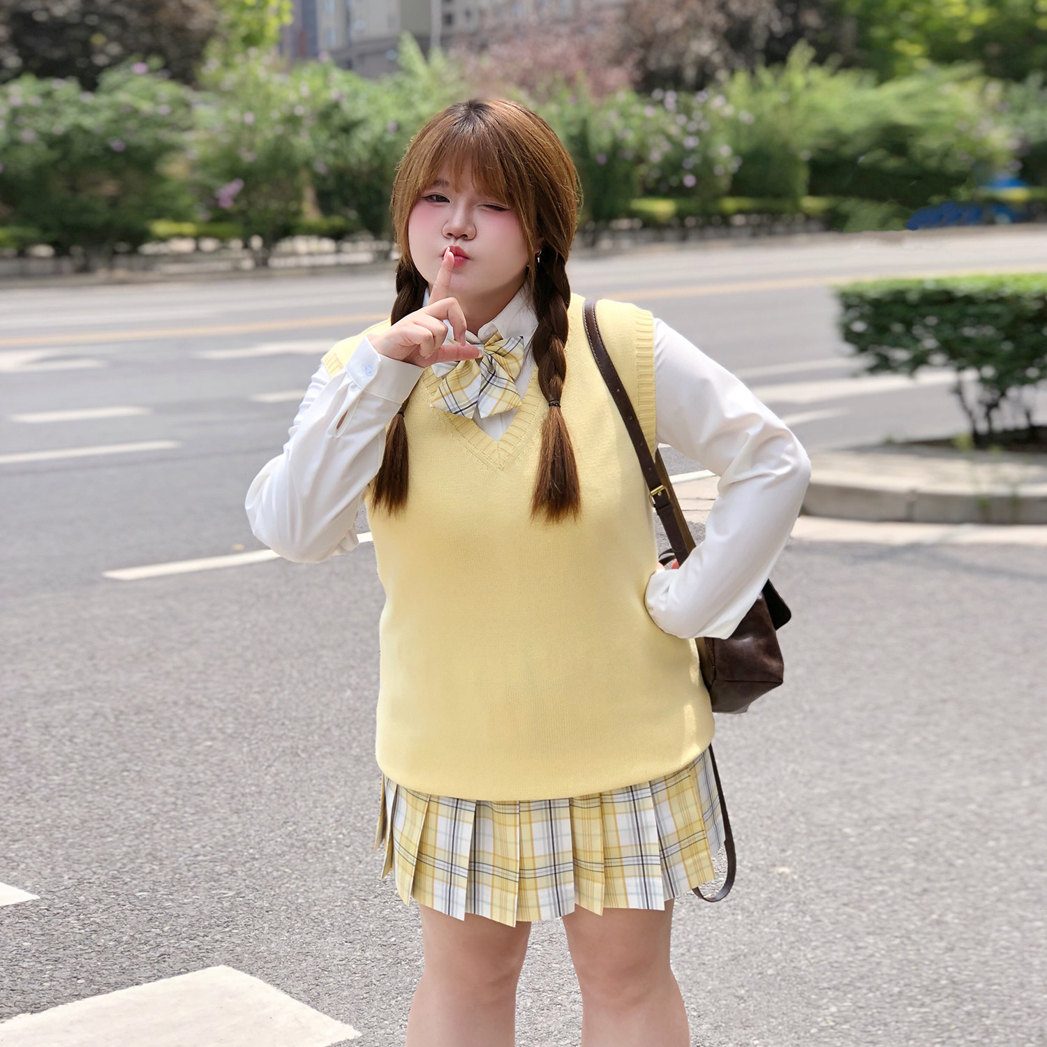 樱时纪原创大码 jk纯色马甲背心黄色日系微胖MM学院风针织纯棉秋冬