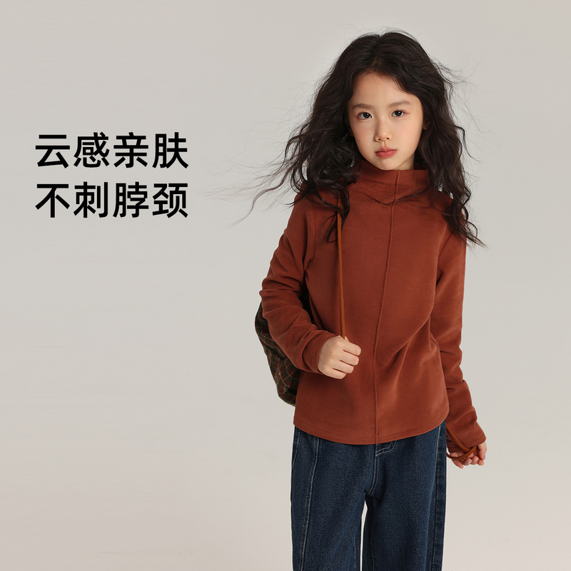 儿童百搭半高领打底衫 女童暖姜绒上衣2025秋冬款 童装 布丁哈鲁冬装