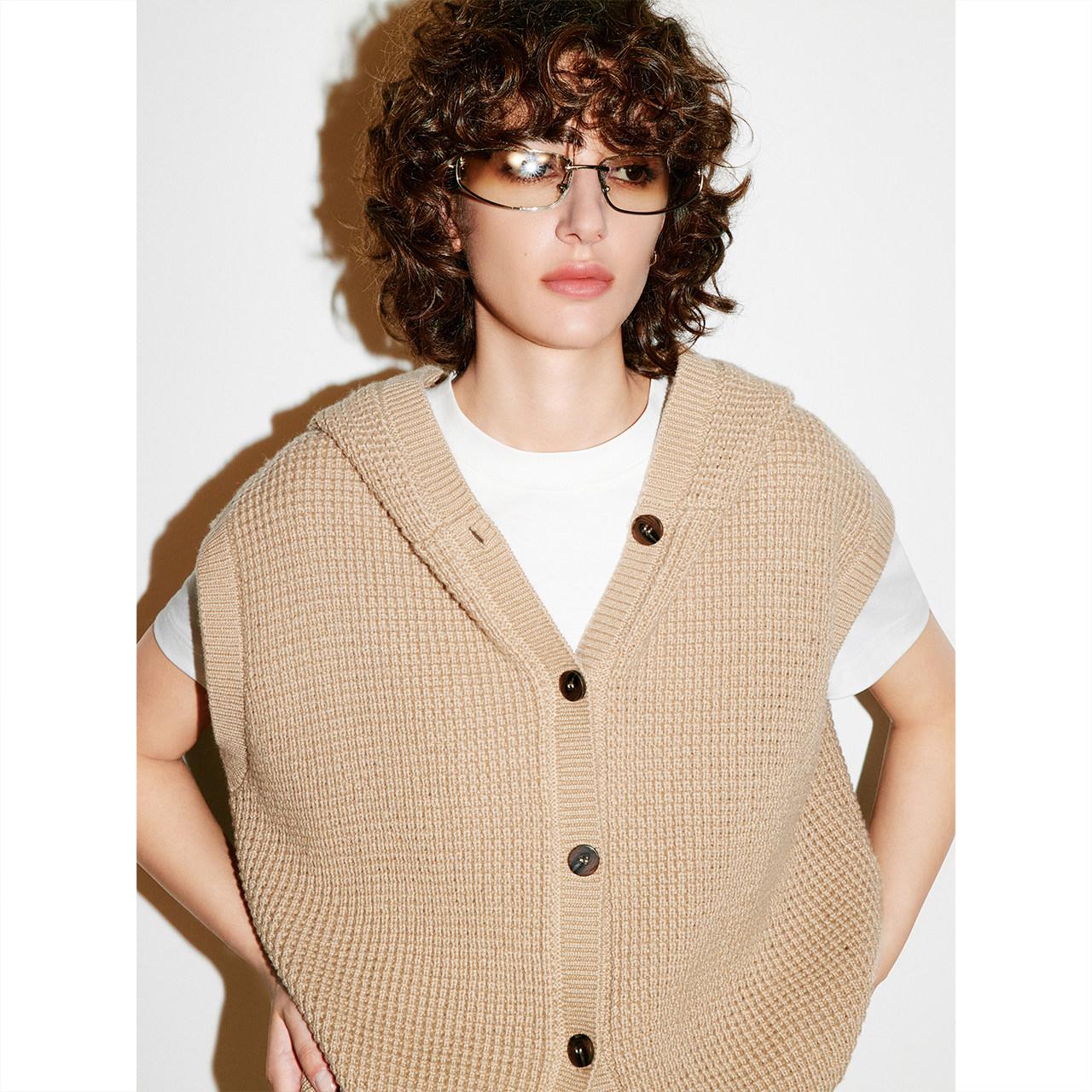 COVERINS叠穿羊毛混纺连帽针织马甲背心女2026春新款 CC36106040