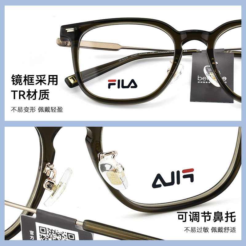 FILA斐乐近视眼镜框茶色钛框镜架复古镜框可配度数男女VFIE21F