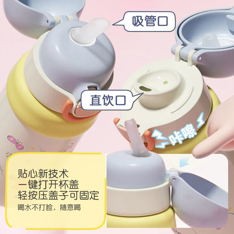 物生物保温杯女生高颜值大容量水杯儿童便携吸管杯子学生生日礼物