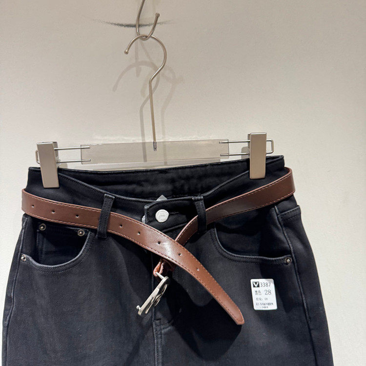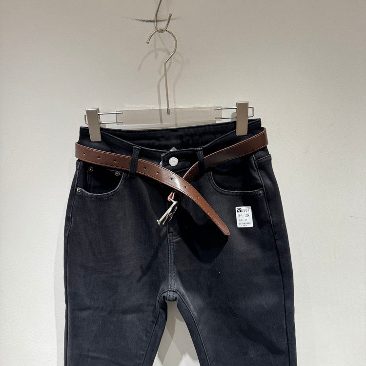 2025新款 女款 秋冬加绒 女松紧腰带老爹裤 胖mm松紧腰大连欧货牛仔裤