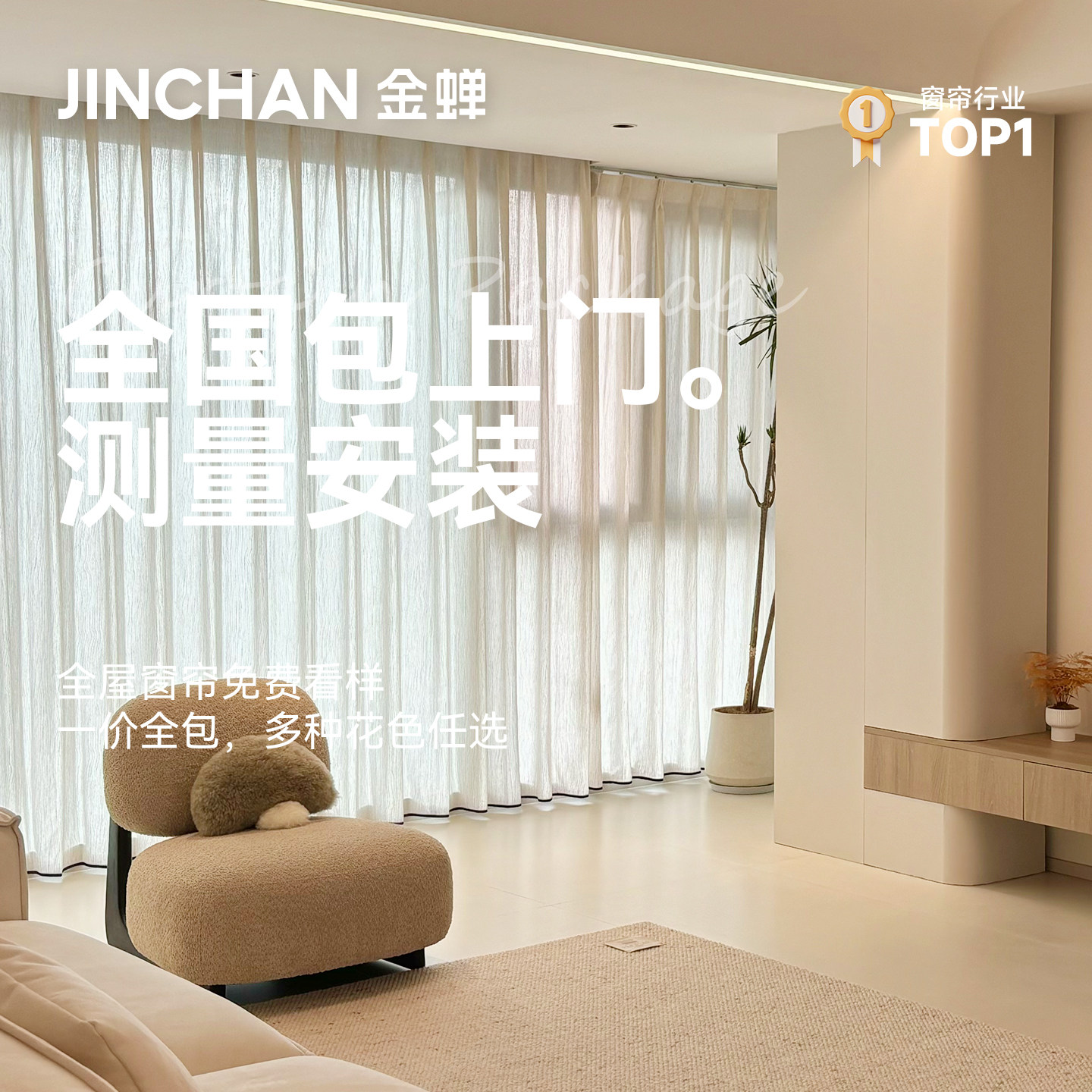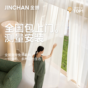 金蝉定制窗帘纱帘电动2025新款 绍兴柯桥透光不透人白纱帘 客厅法式