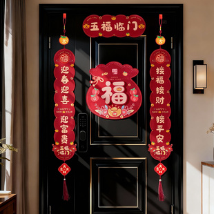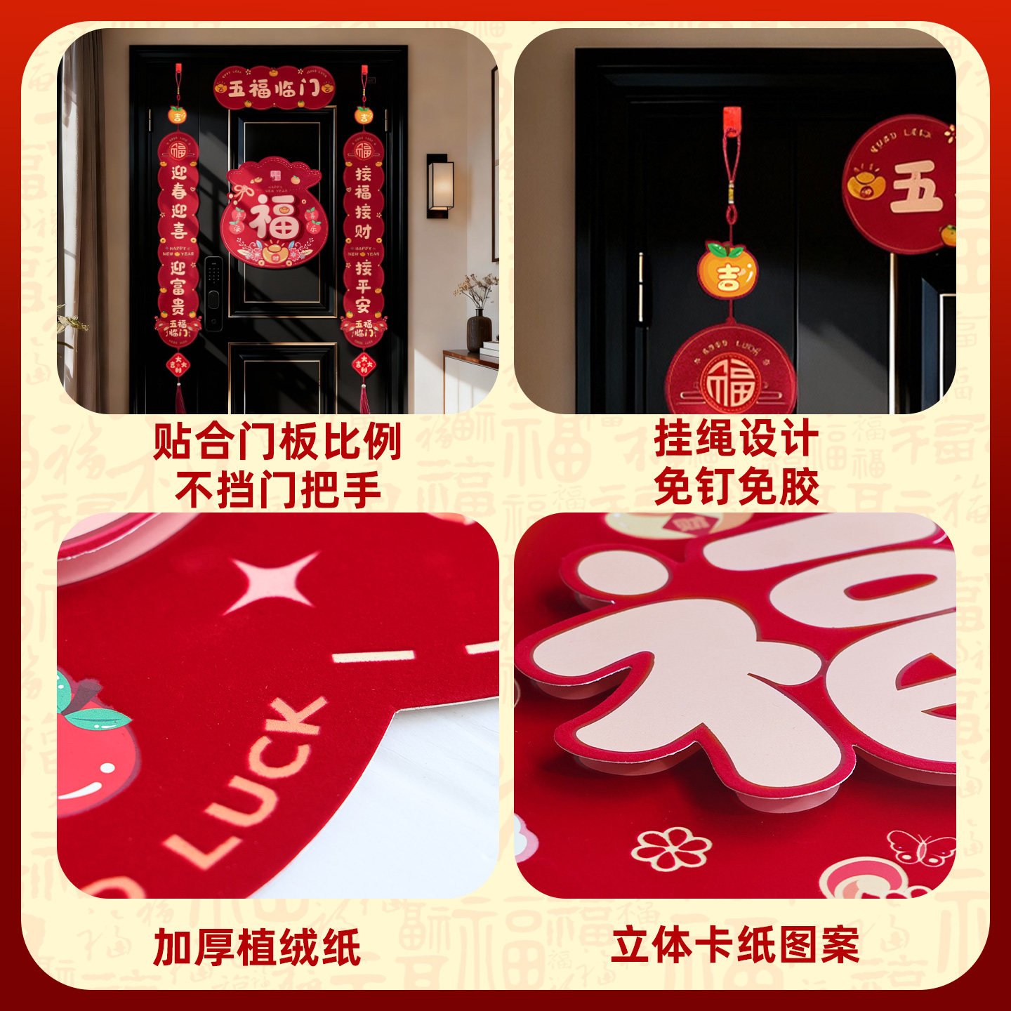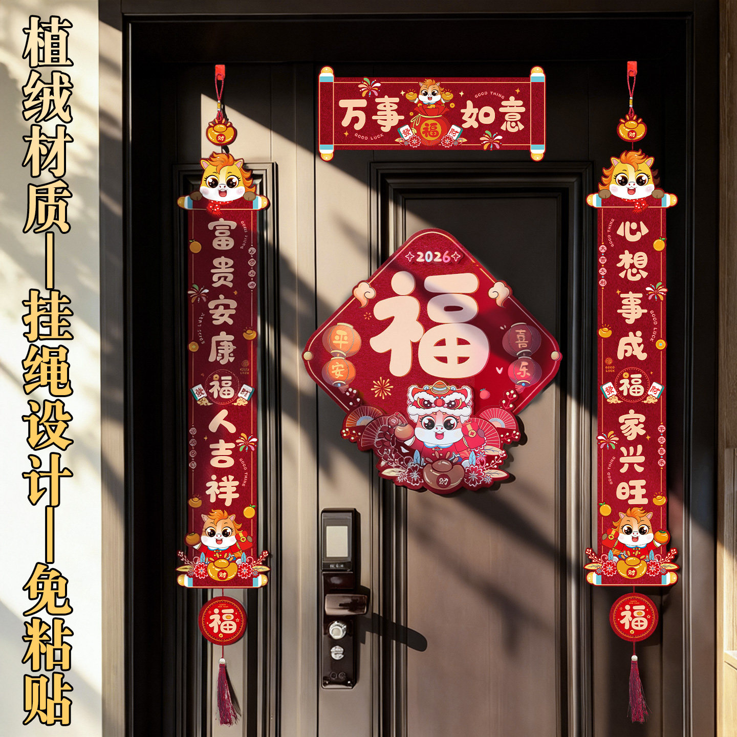 马年春节对联过年春联家用大门装 新年植绒新春福字门联 饰2026新款