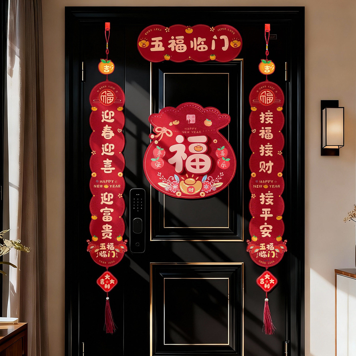 2026马年过年新款 饰 对联新春新年绒布春联高端福字高档春节大气装
