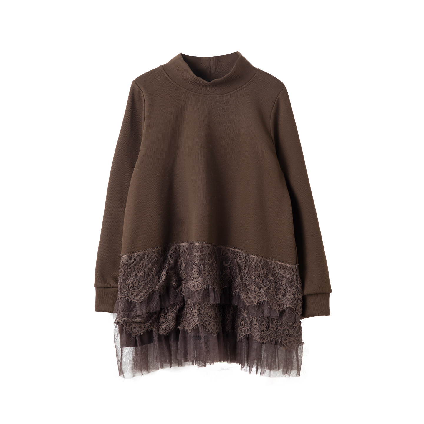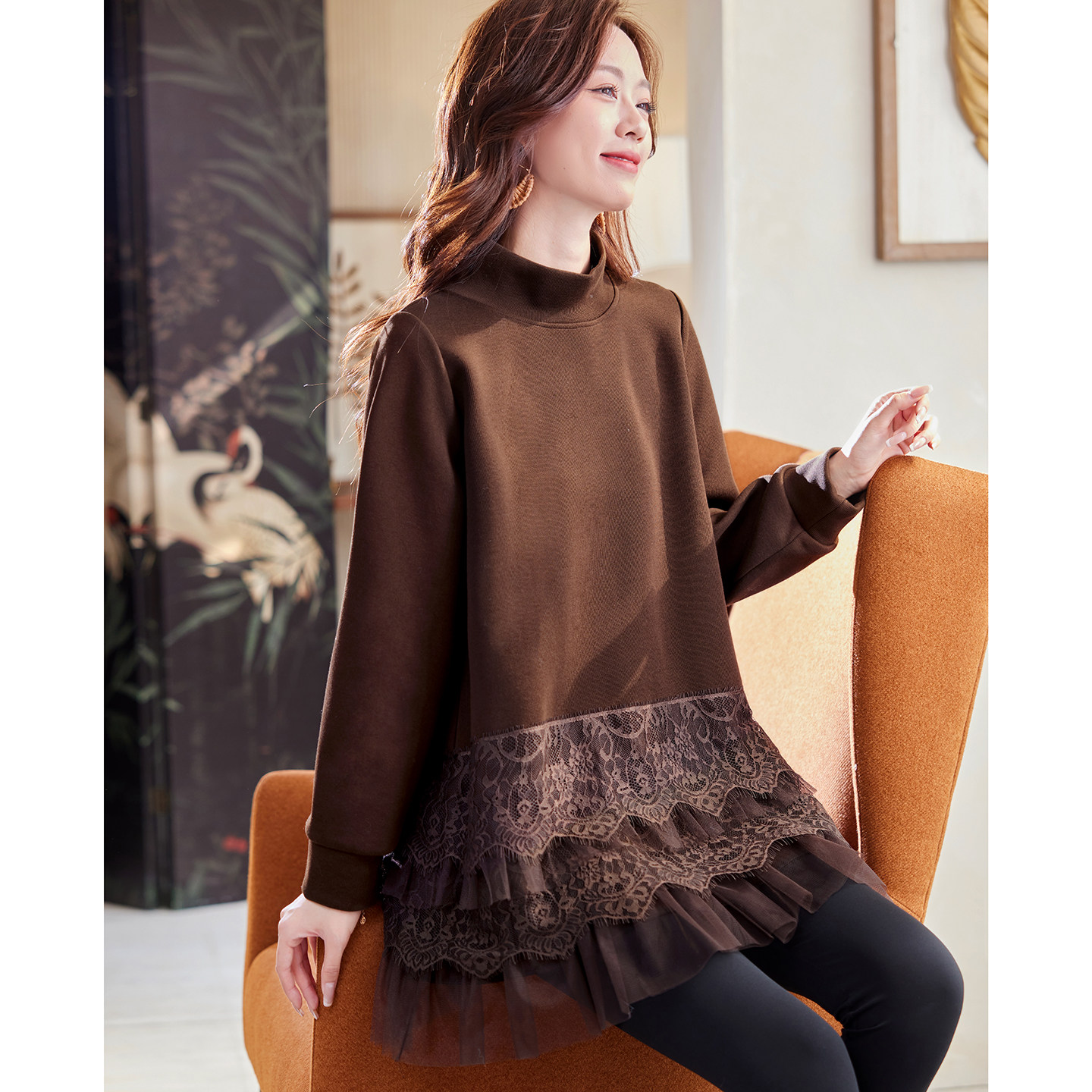 宝诗黎半高领蕾丝拼接卫衣女2026春季 洋气复古百搭休闲棉质上衣