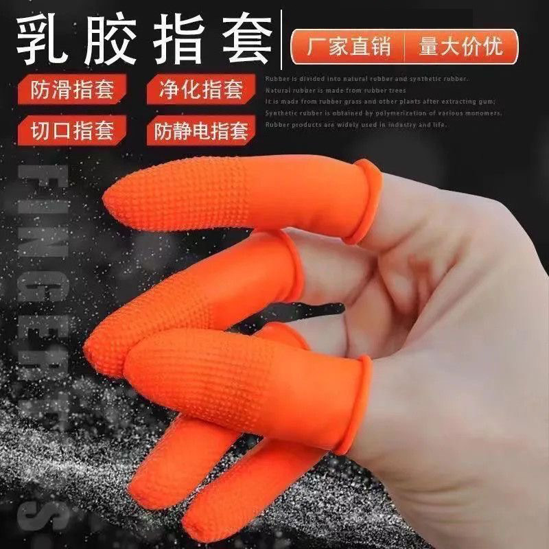 防滑手指套橙色白色麻点一次性乳胶橡胶防护点钞分页劳保手指套