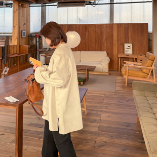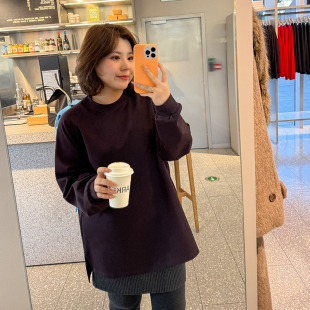 冬季 胖mm松弛感中长款 女装 T恤木子理想大码 休闲宽松开叉内搭T 长袖