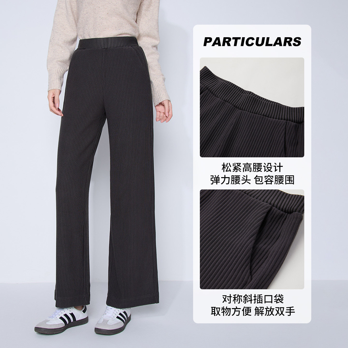 时尚 子长裤 百搭流行女 灰色高腰宽松直筒休闲裤 马天奴2025秋冬新款