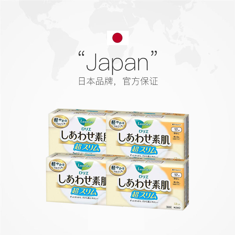 32片 4包日本进口花王乐而雅F系列日用卫生巾17cm 4透气 自营