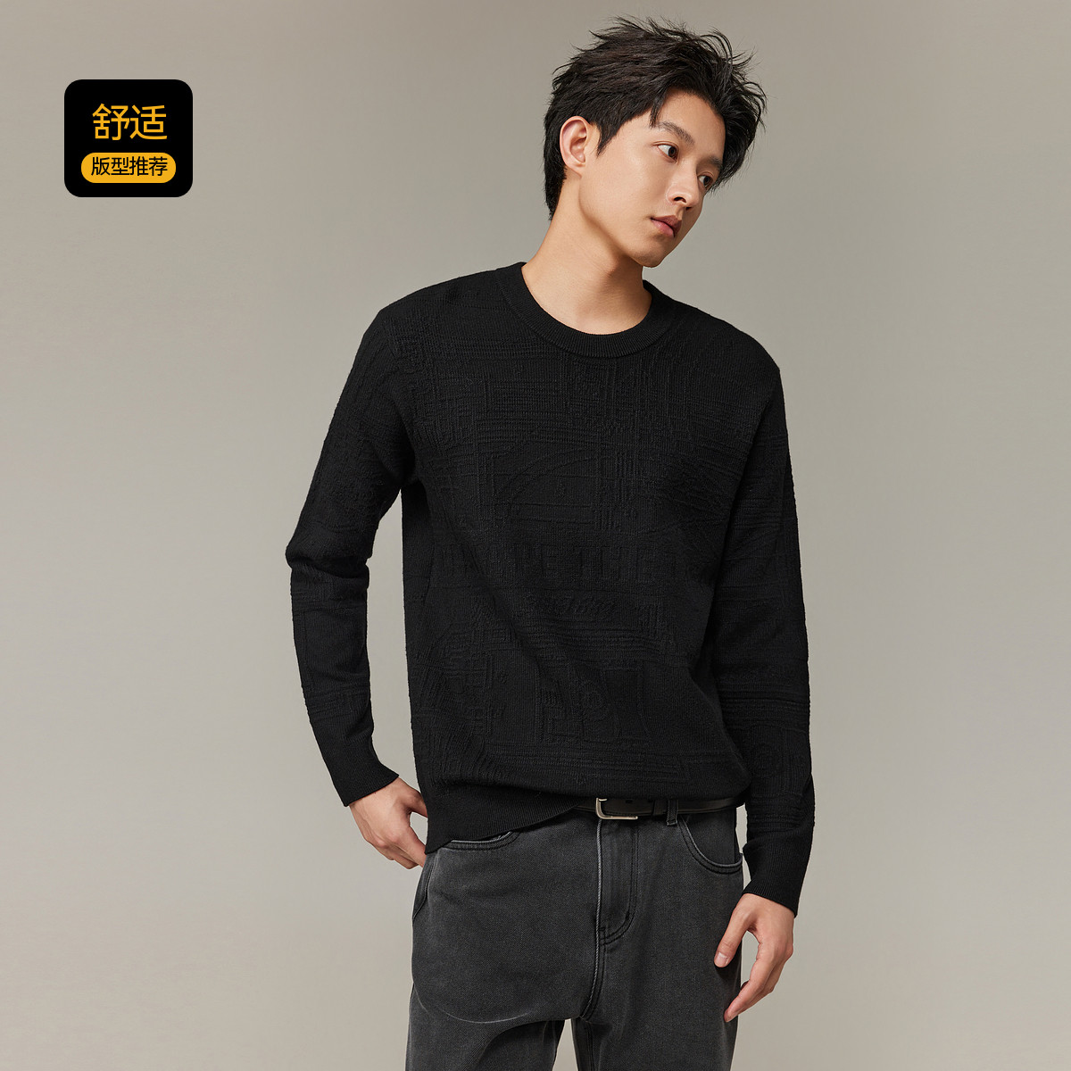 几何肌理提花 长袖 卡宾高级圆领针织衫 春季 毛衣 男装