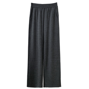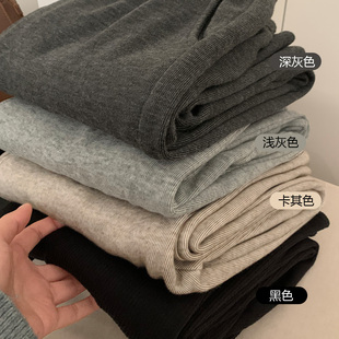 外穿 小个子显瘦垂感休闲阔腿裤 高腰灰色针织直筒加绒裤 女2025新款