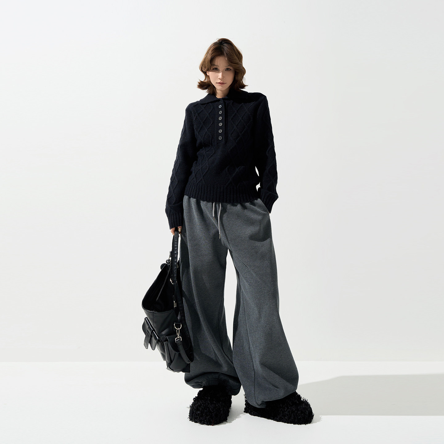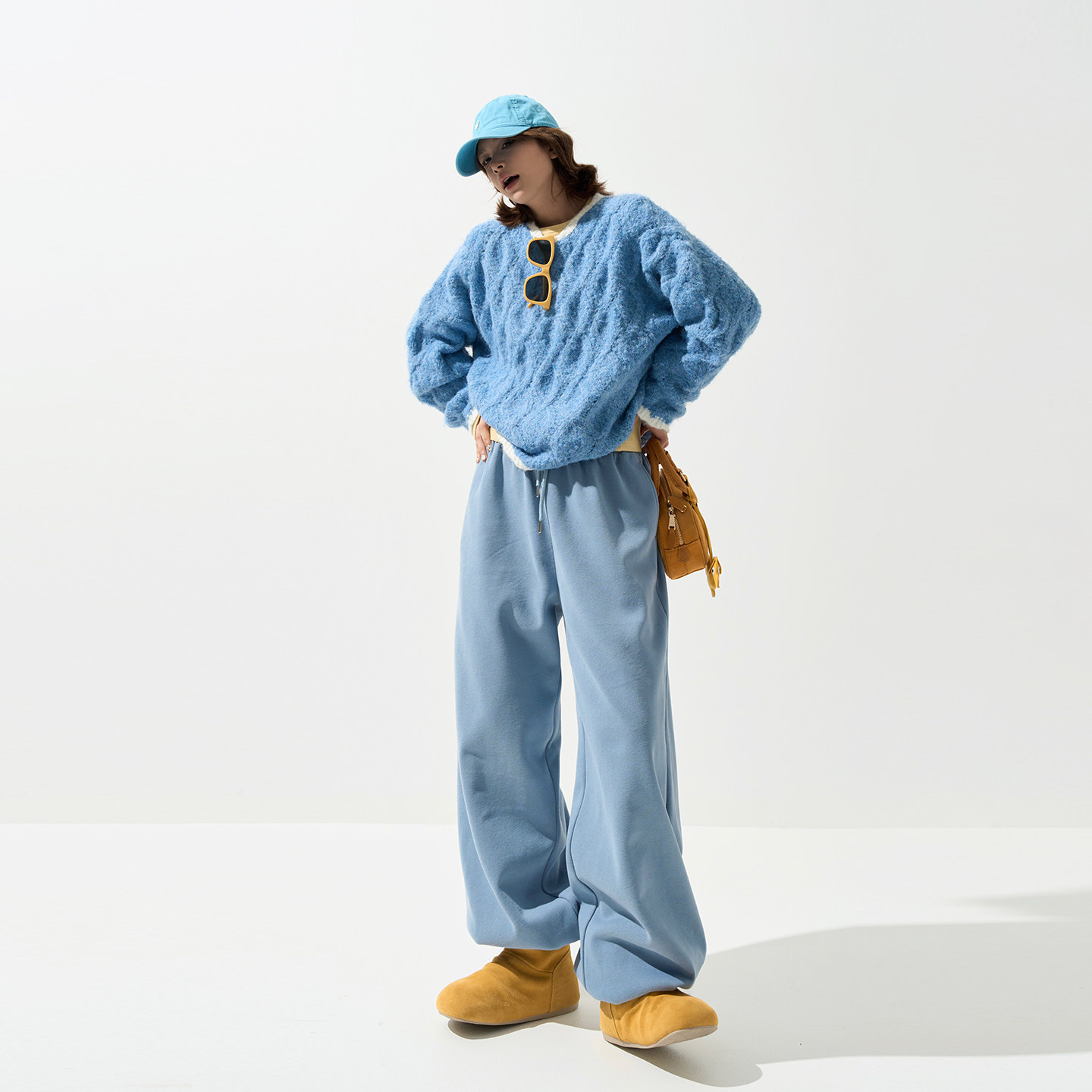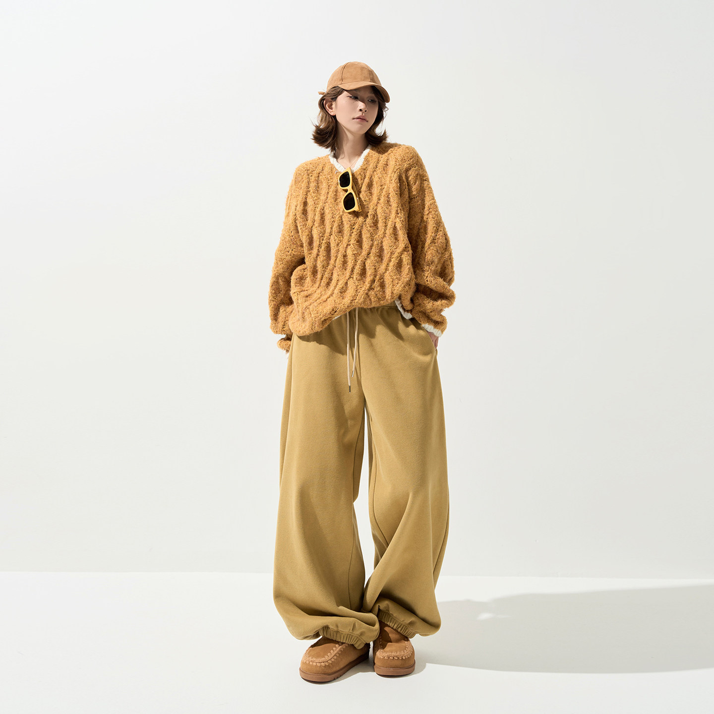 吴童童加绒加厚垂感阔腿束脚休闲裤 子 女秋冬韩系高腰宽松保暖长裤
