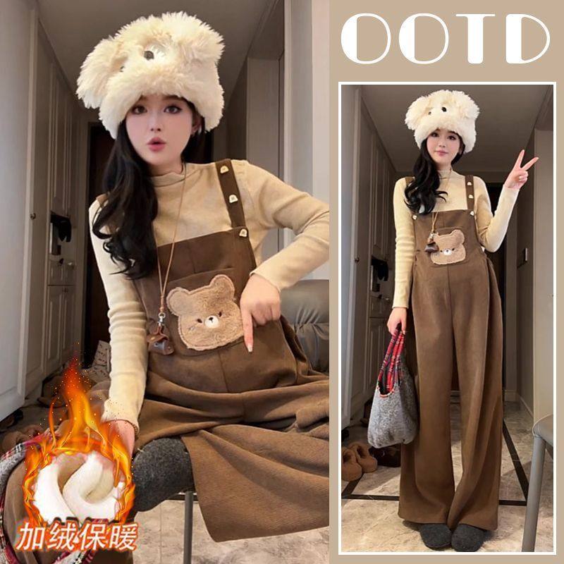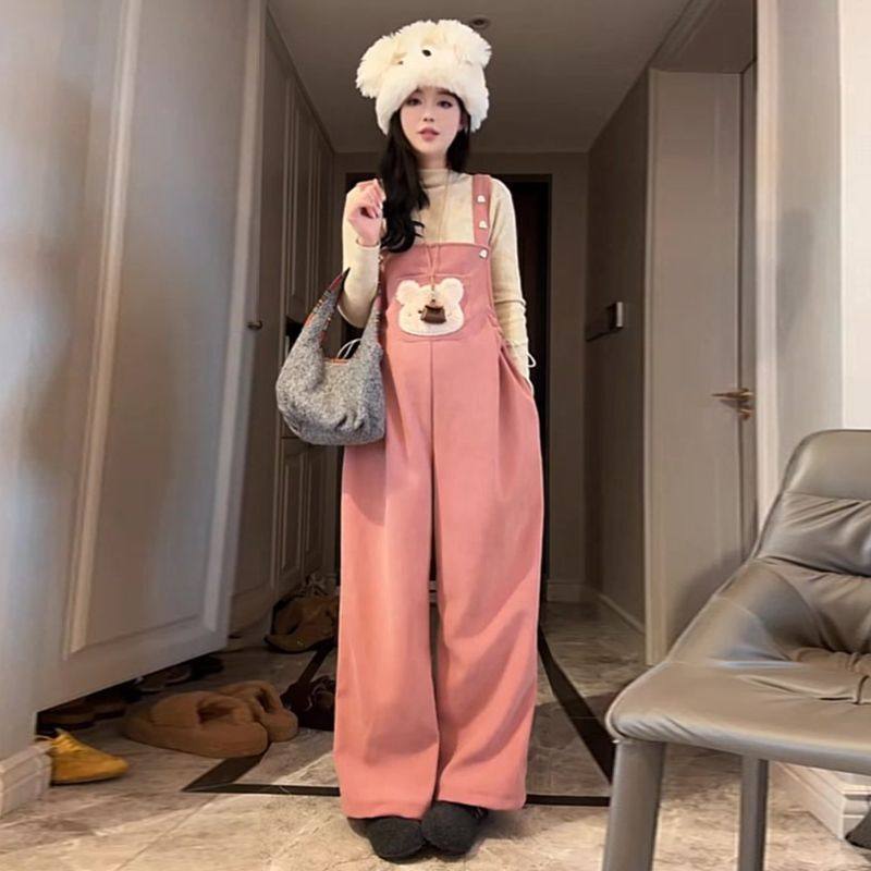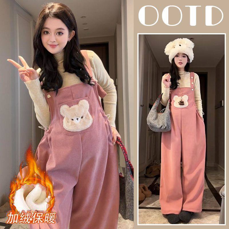 加绒背带裤 洋气减龄卡通阔腿裤 针织毛衣两件套 2025秋冬新款 孕妇装