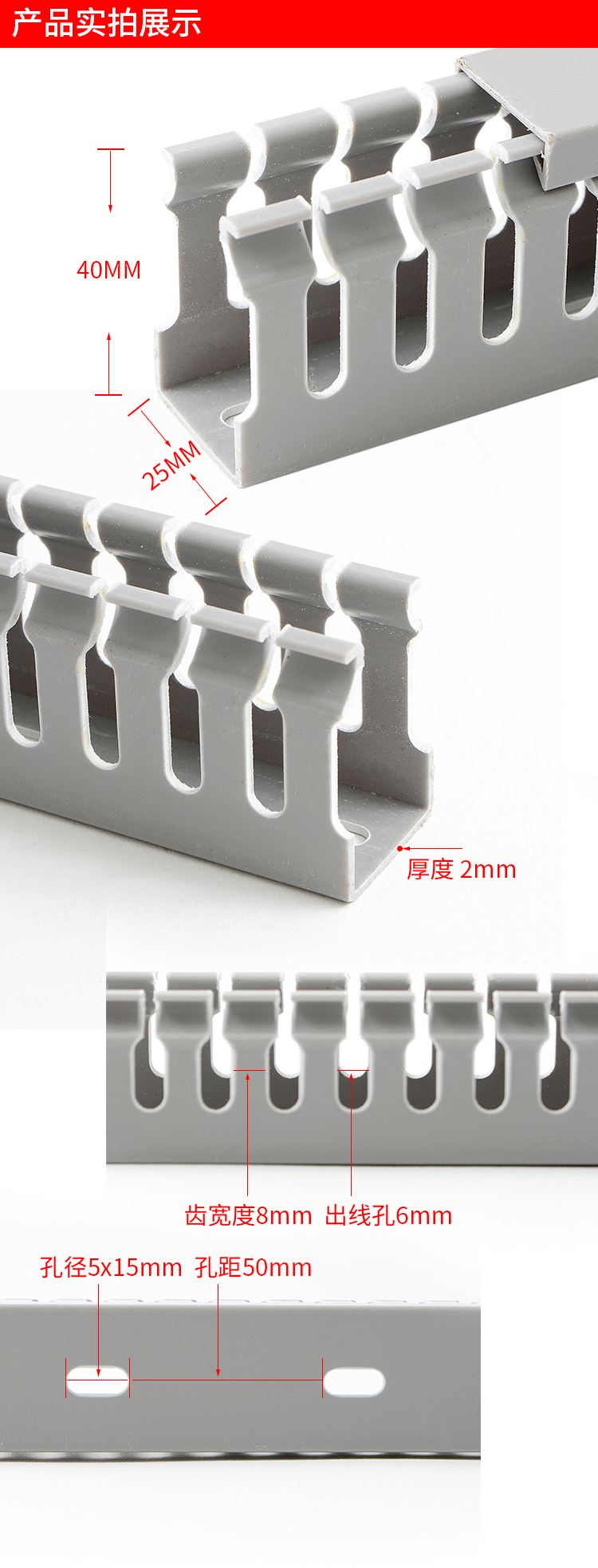 机柜用线槽 25线槽板 方线槽一米价 灰色PVC配电柜线槽40 高品质