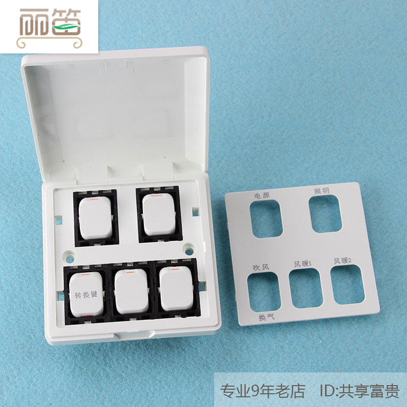 防水风暖浴霸开关五开卫生间专用通用滑盖浴室五合一五控45开面板