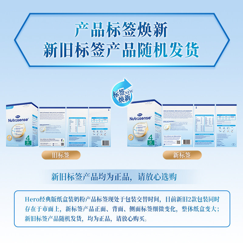 进口DHA婴幼儿4段儿童奶粉2岁 纸盒原装 3盒 版 herobaby荷兰经典