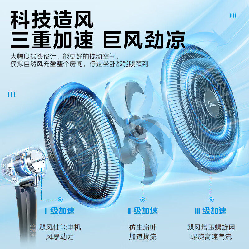 美 工业电风扇强力落地扇家商用大风力功率牛角扇除甲醛工厂车间