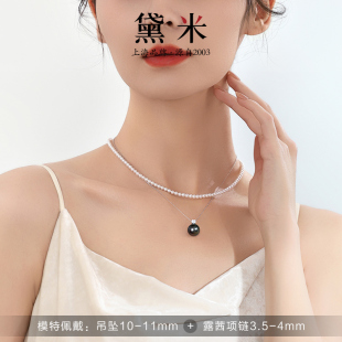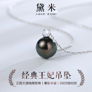 配证书 海水正圆大溪地黑珍珠项链女S925银吊坠 黛米珠宝 夜未央