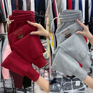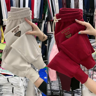 高腰显瘦运动裤 加绒加厚休闲卫裤 宽松纯棉束脚哈伦裤 新款 子 女冬季