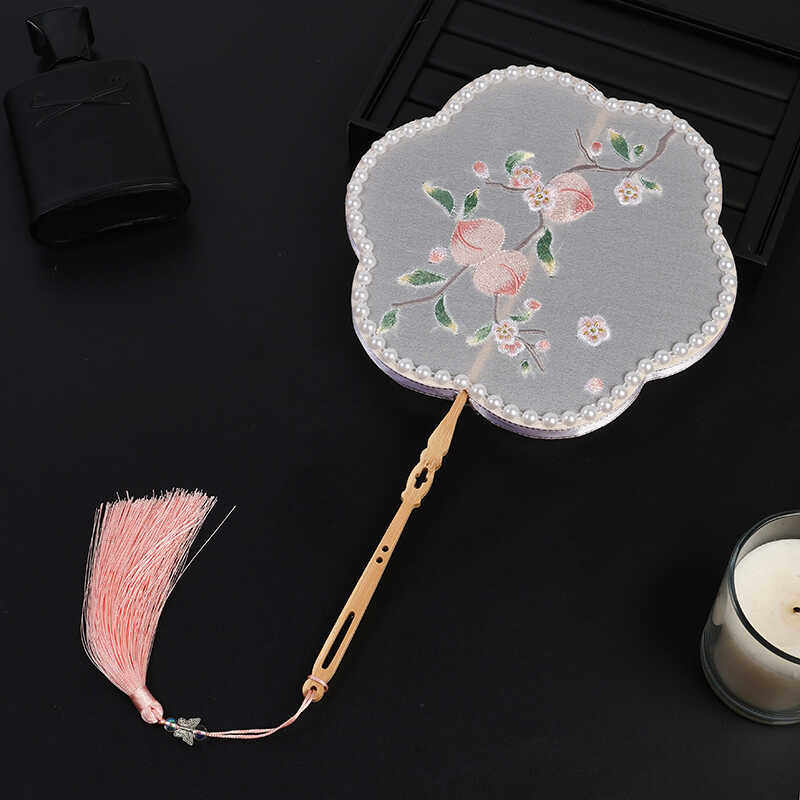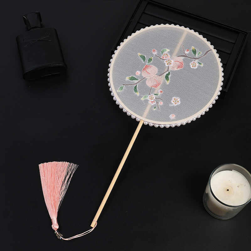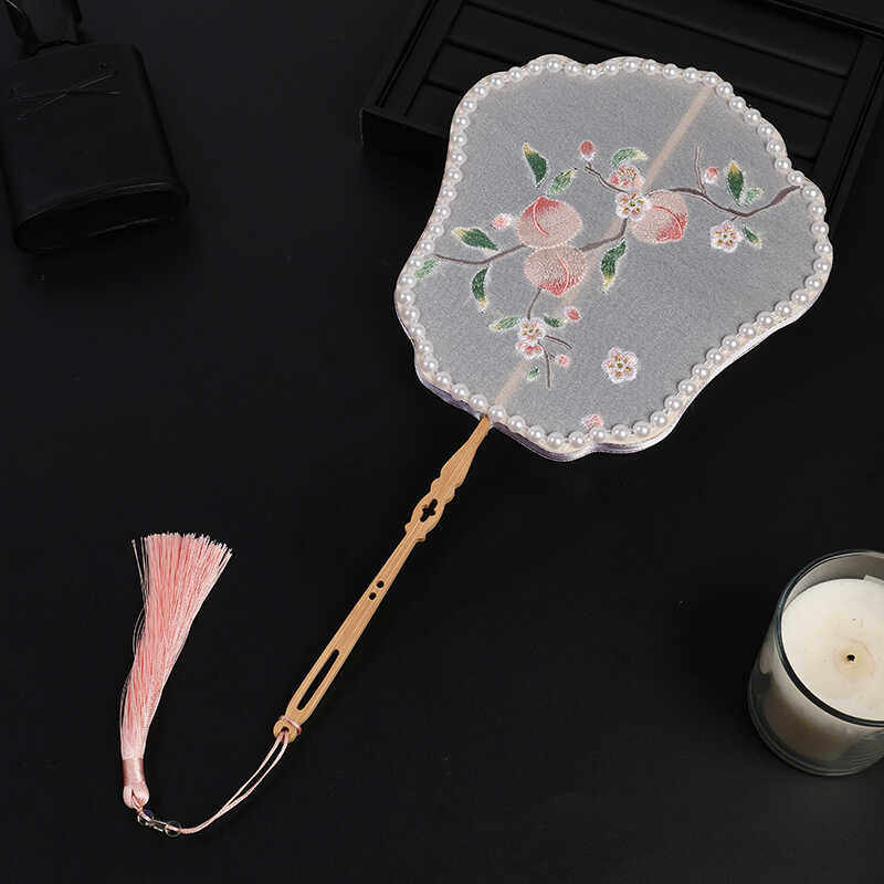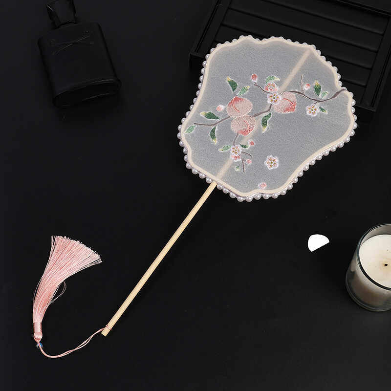 蝴蝶团扇国潮复古风仙桃刺绣扇子中国风古典跳舞拍摄道具长柄宫扇
