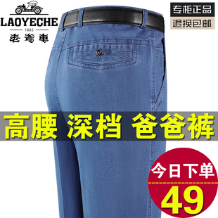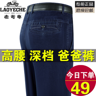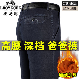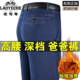 宽松爸爸弹力休闲长裤 老爷车牛仔裤 秋冬厚款 中老年直筒男裤 子 男士