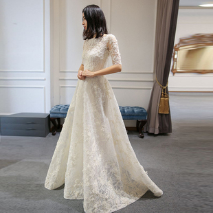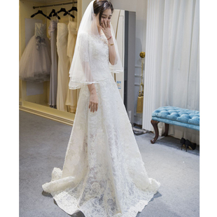 森系轻婚纱礼服2020r新款 新娘结婚齐地简约显瘦一字肩公主长款