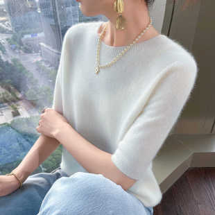 五分袖 毛衣宽松羊毛衫 女一线成衣半袖 24春秋圆领轻奢级山羊绒短袖
