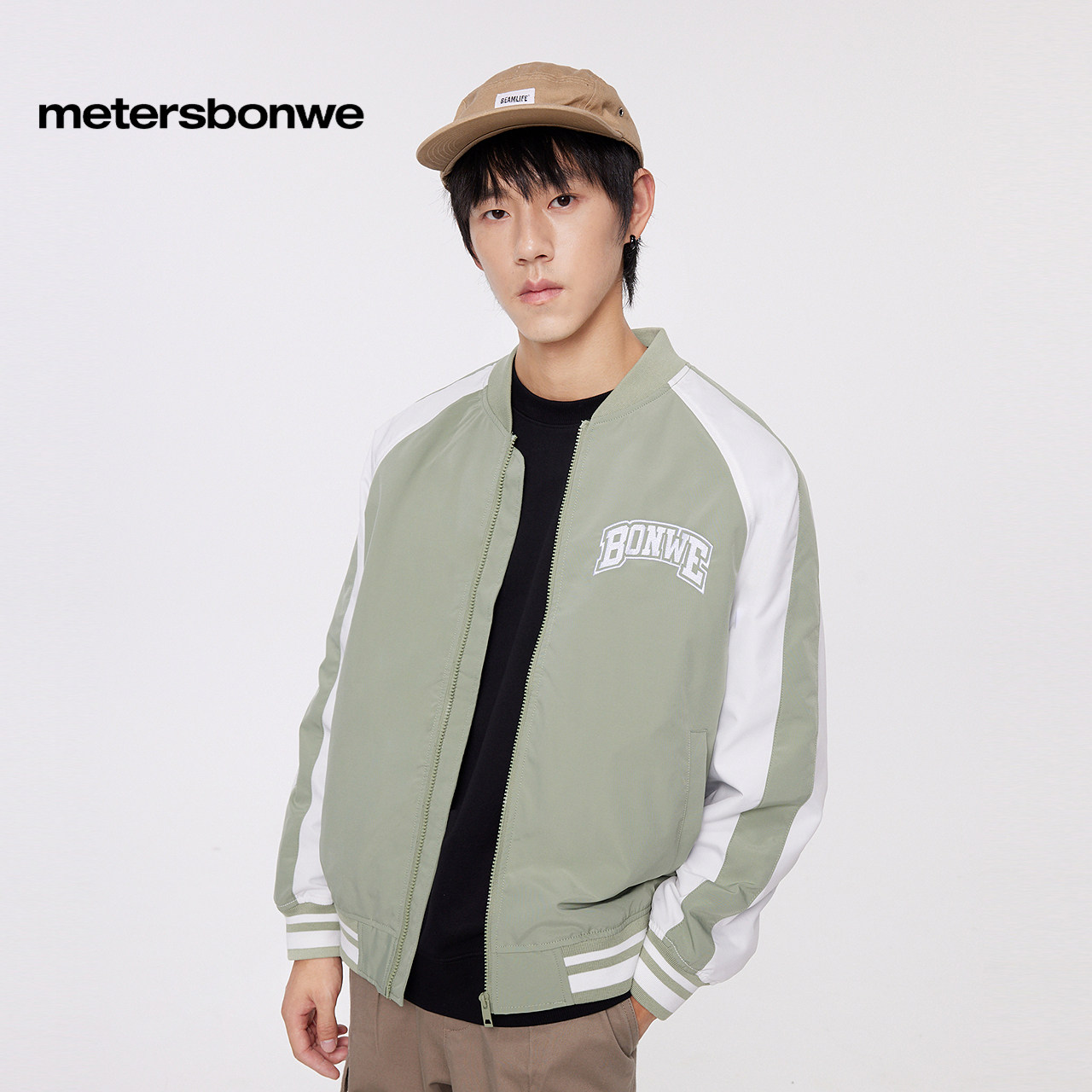 撞色复古刺绣外套经典 新款 百搭棒球服男 春季 美特斯邦威夹克男士