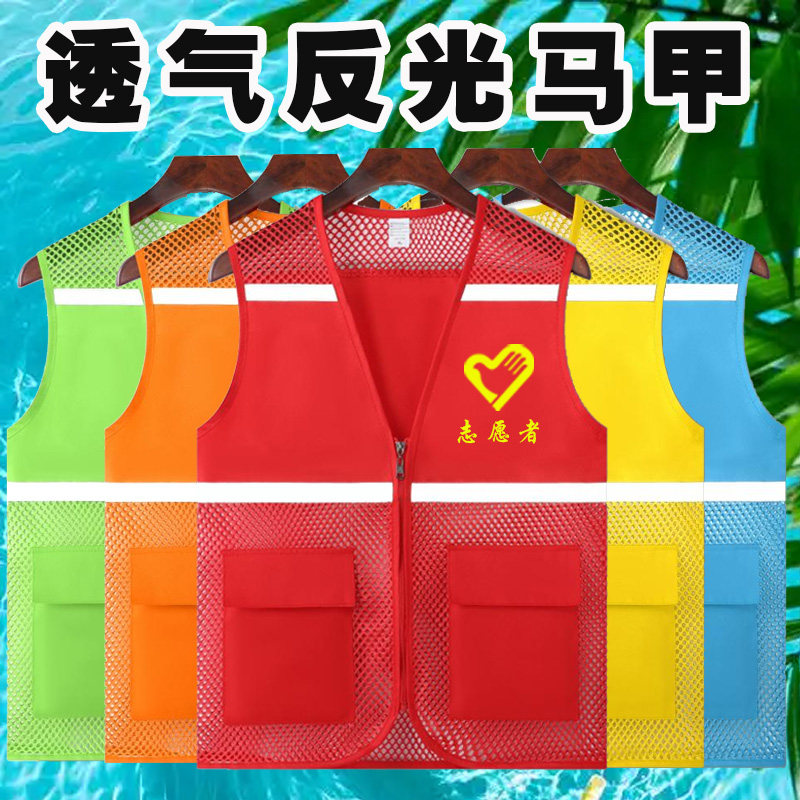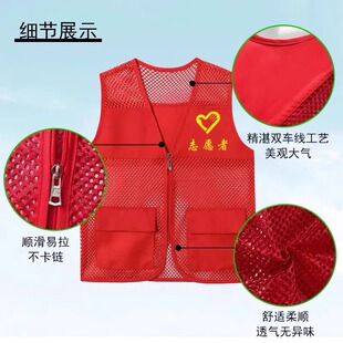 志愿者网眼马甲定制印logo渔网夏季 红背心义工网格状工作服广告衫