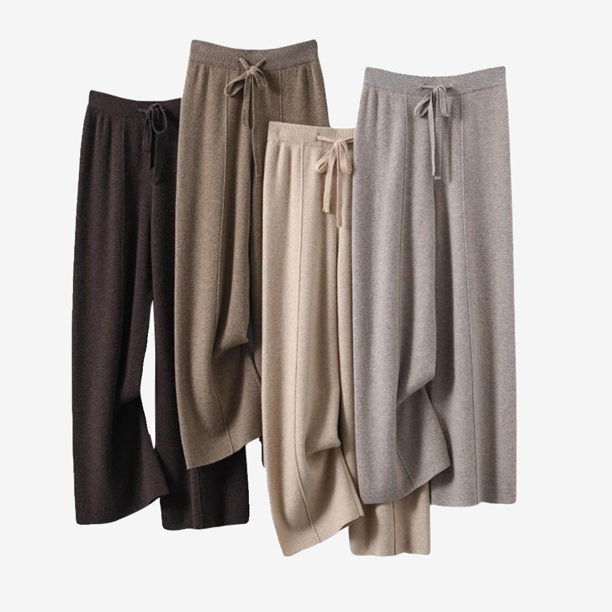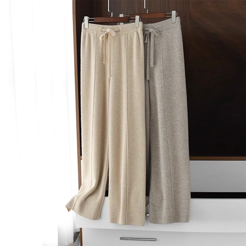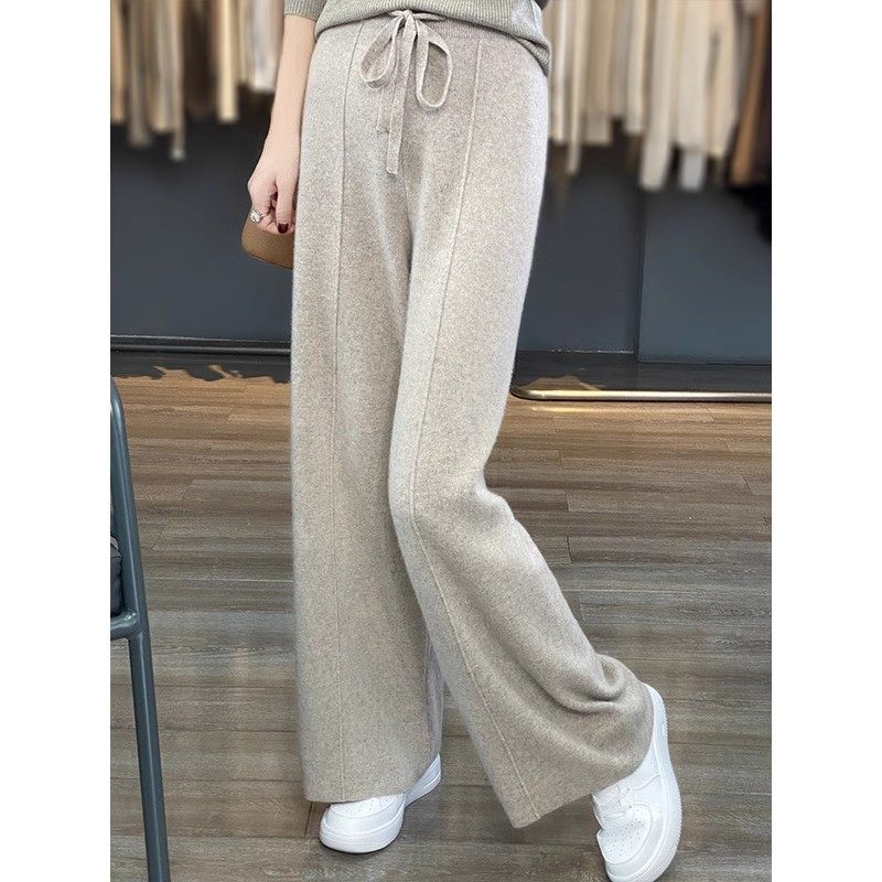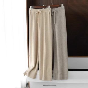 直筒裤 外穿长裤 女高腰垂感秋冬羊绒拖地裤 加厚中缝羊毛针织阔腿裤