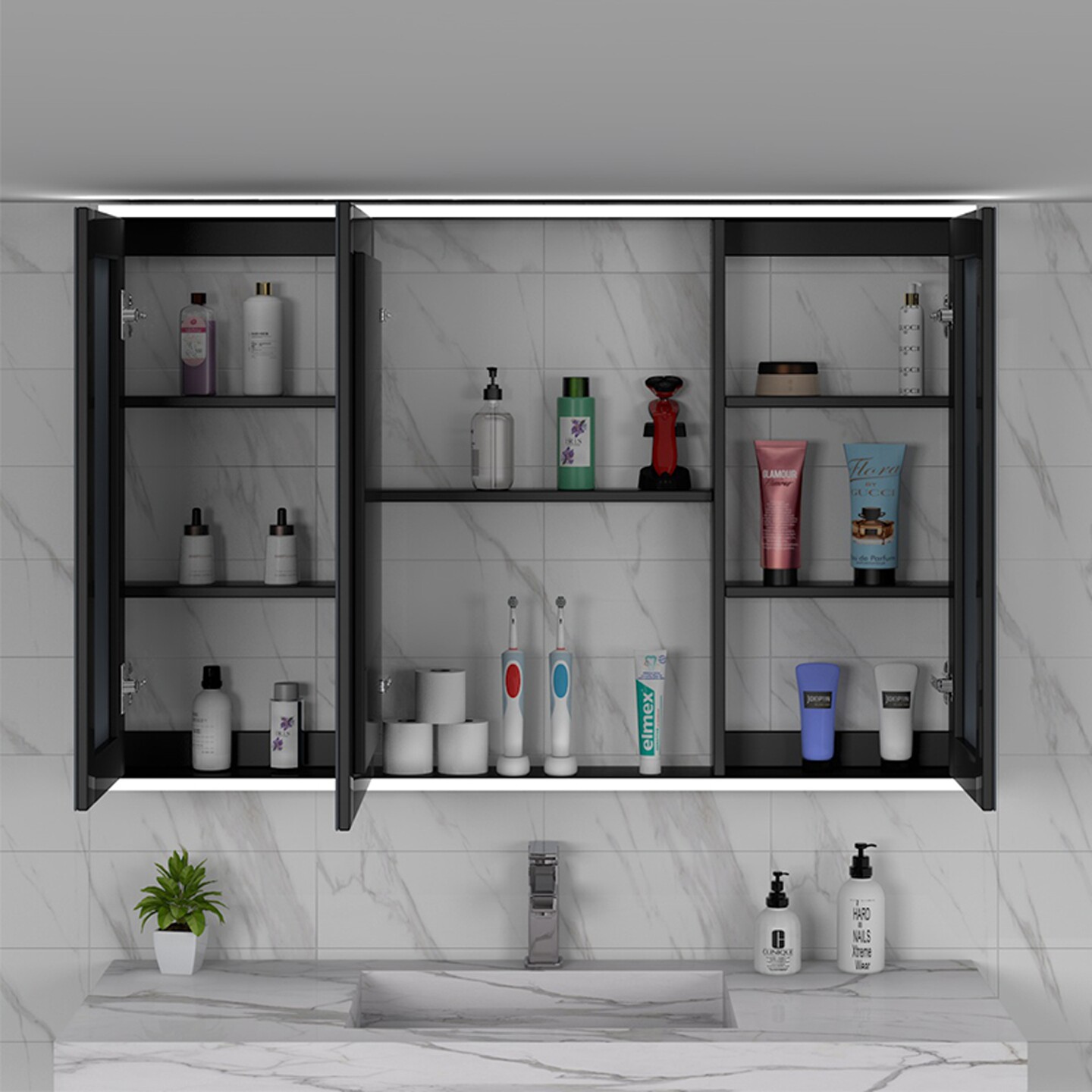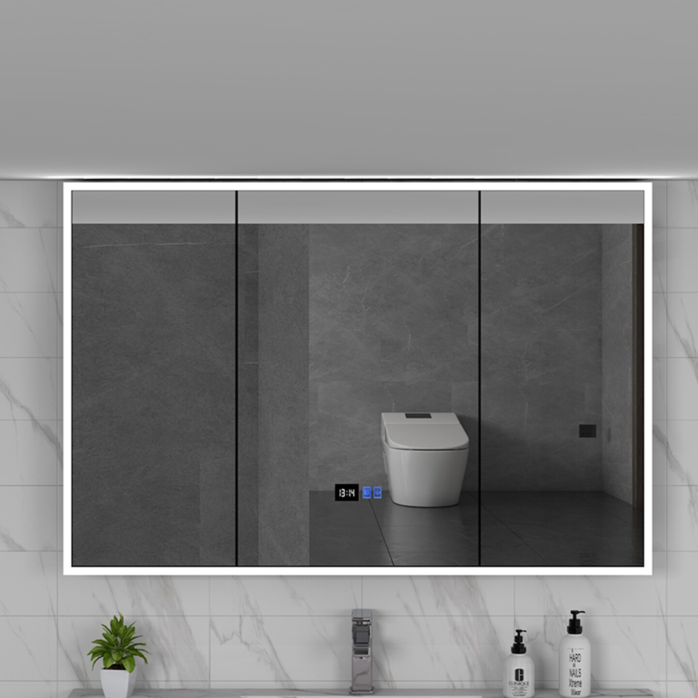 圆角太空铝智能浴室镜柜储物柜卫生间挂墙式 带美妆收纳架梳妆镜箱