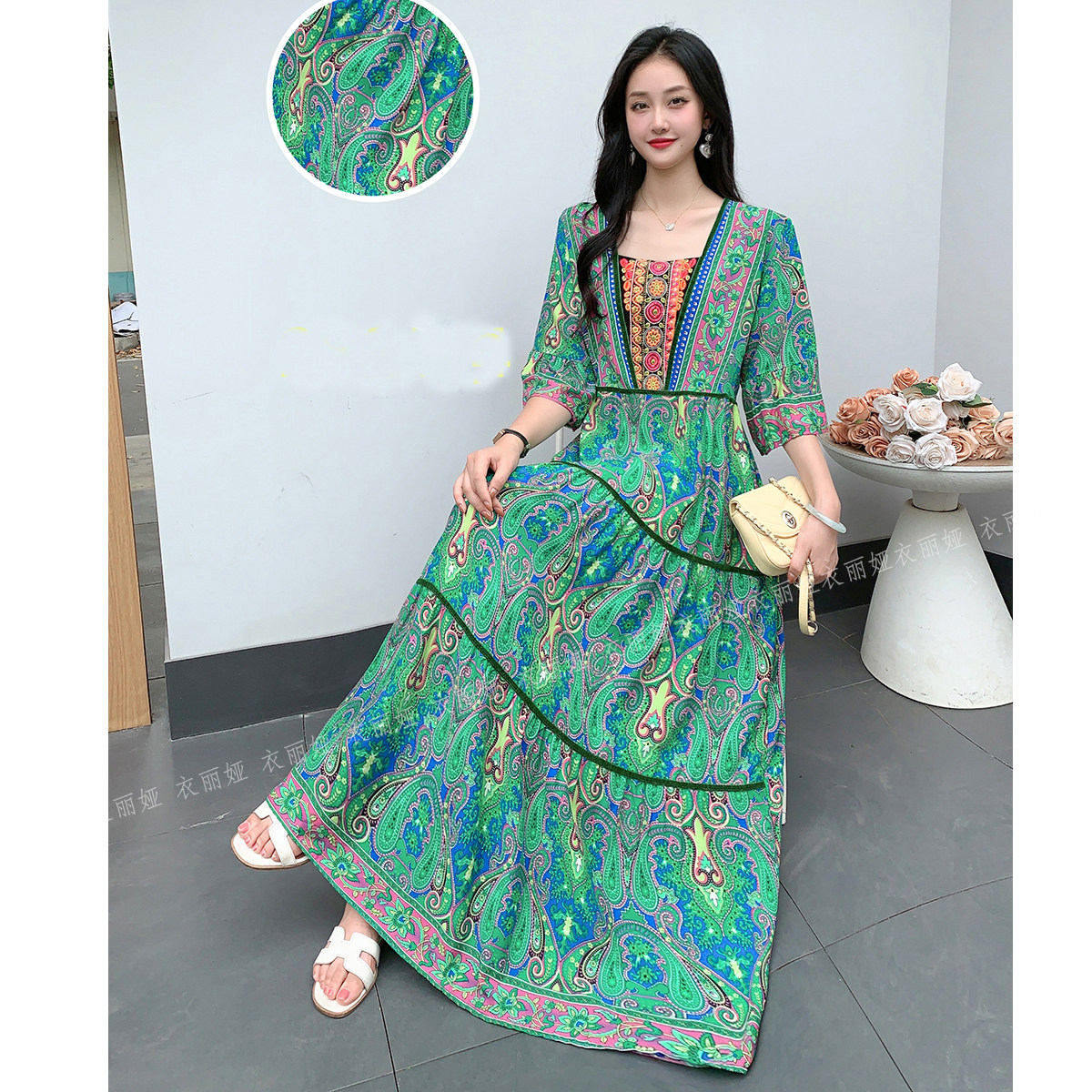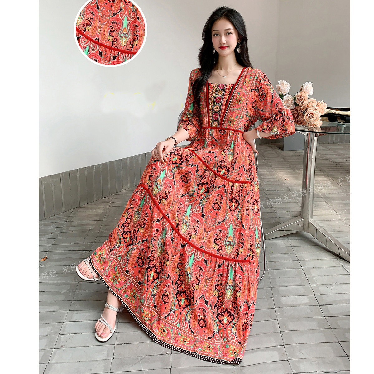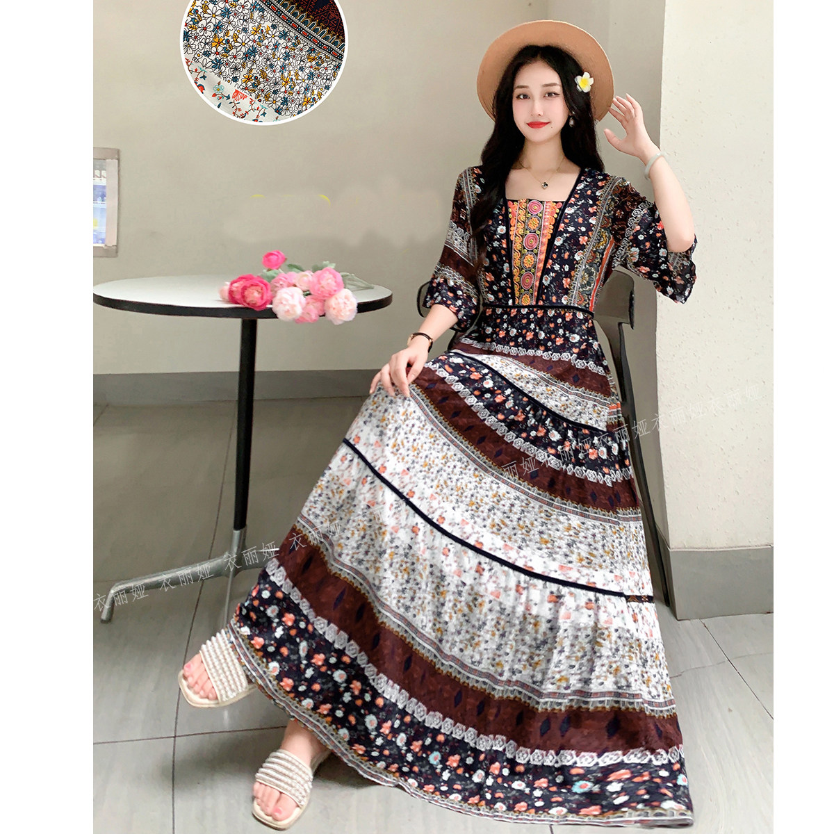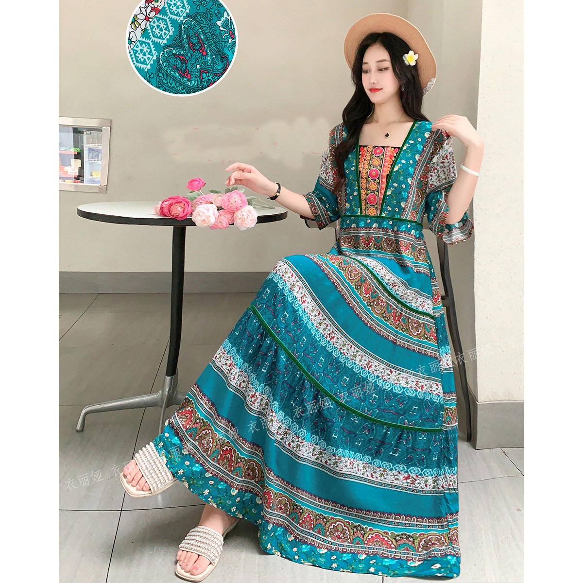 波西米亚连衣裙泰国云南新疆民族风复古长裙子海边度假旅游棉绸