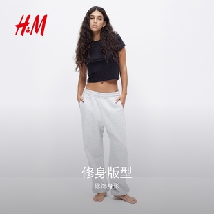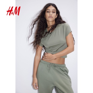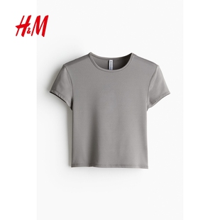 修身 内搭打底衫 弹力汗布窄边领口辣妹短上衣1234741 T恤冬季 HM女装
