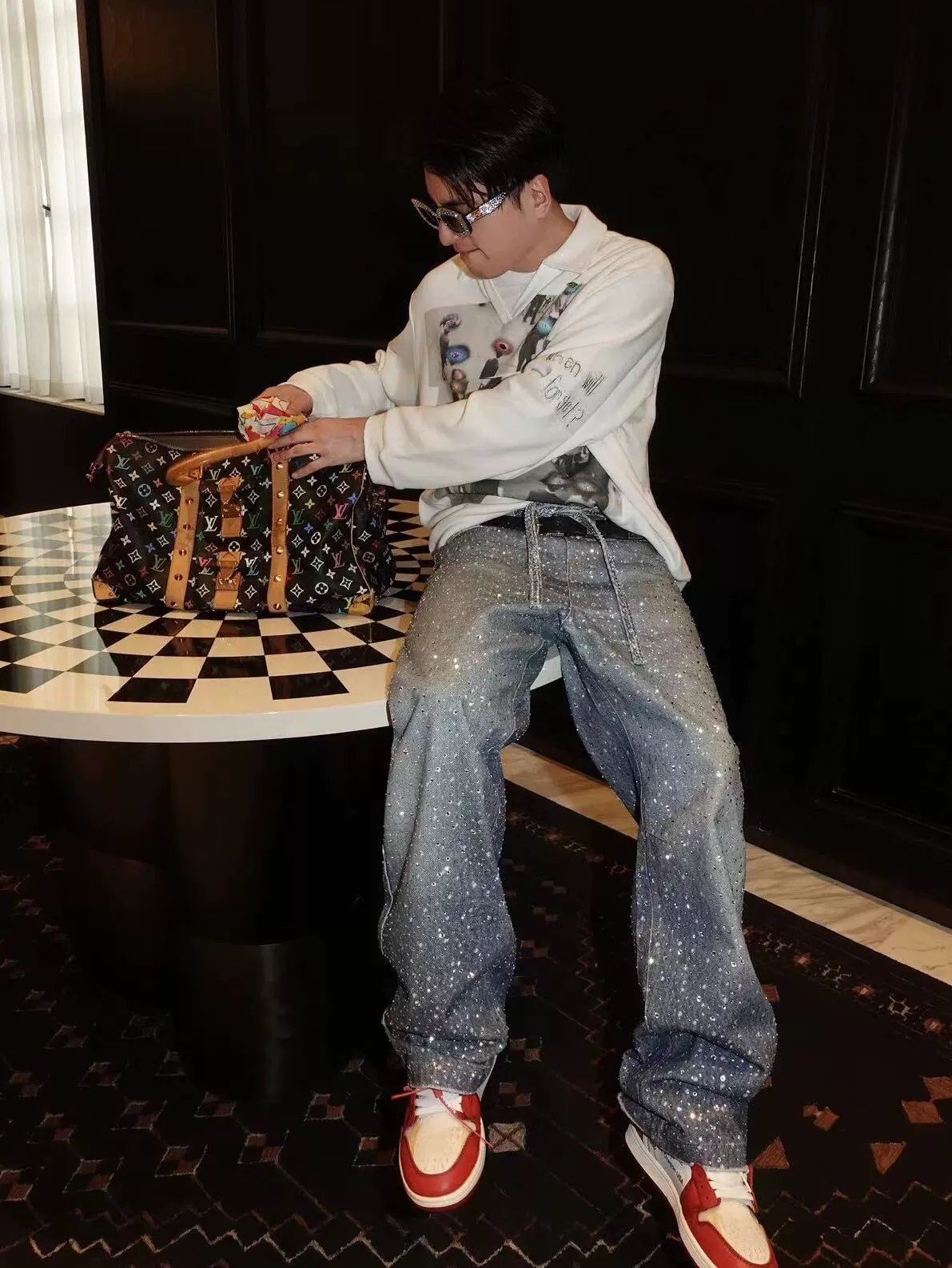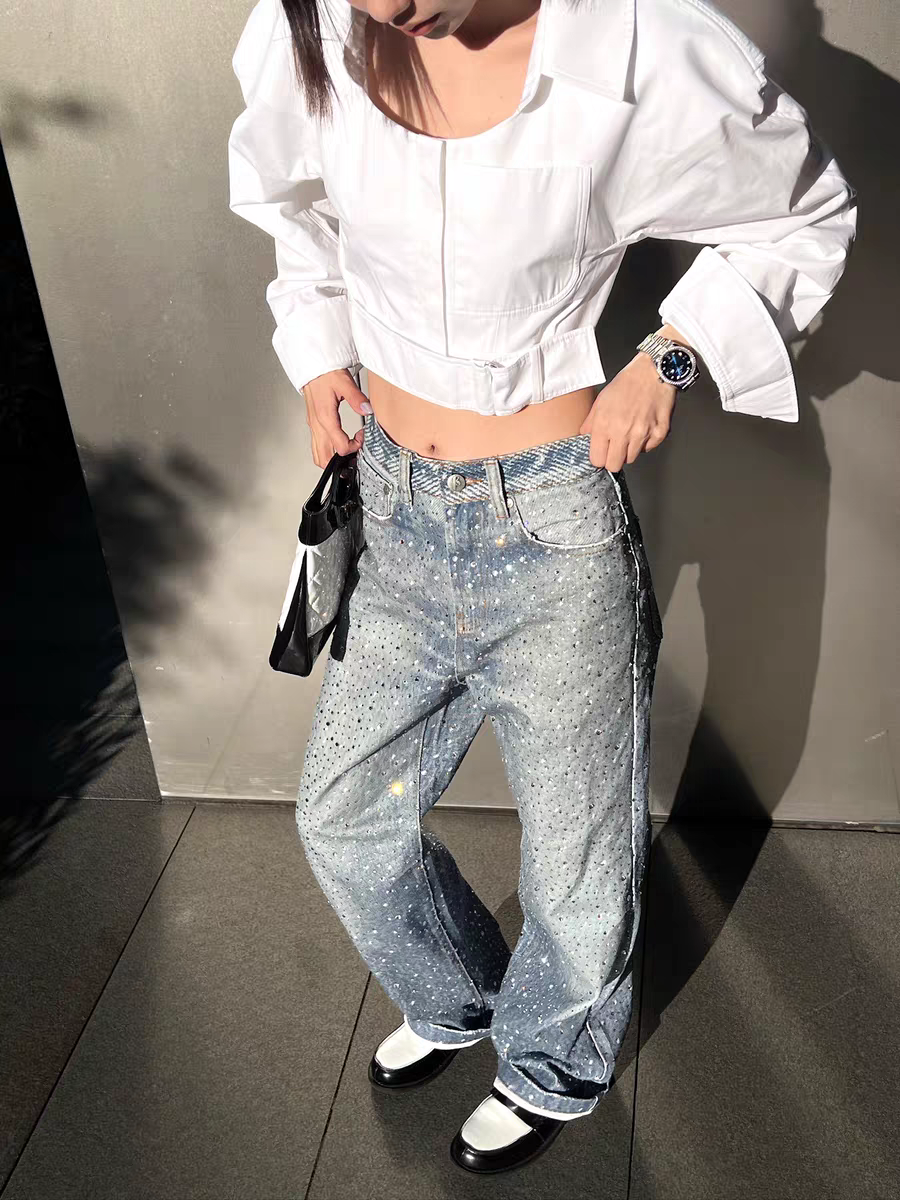 明星同款 Child Birth Royal borc重工立体印花满钻牛仔裤