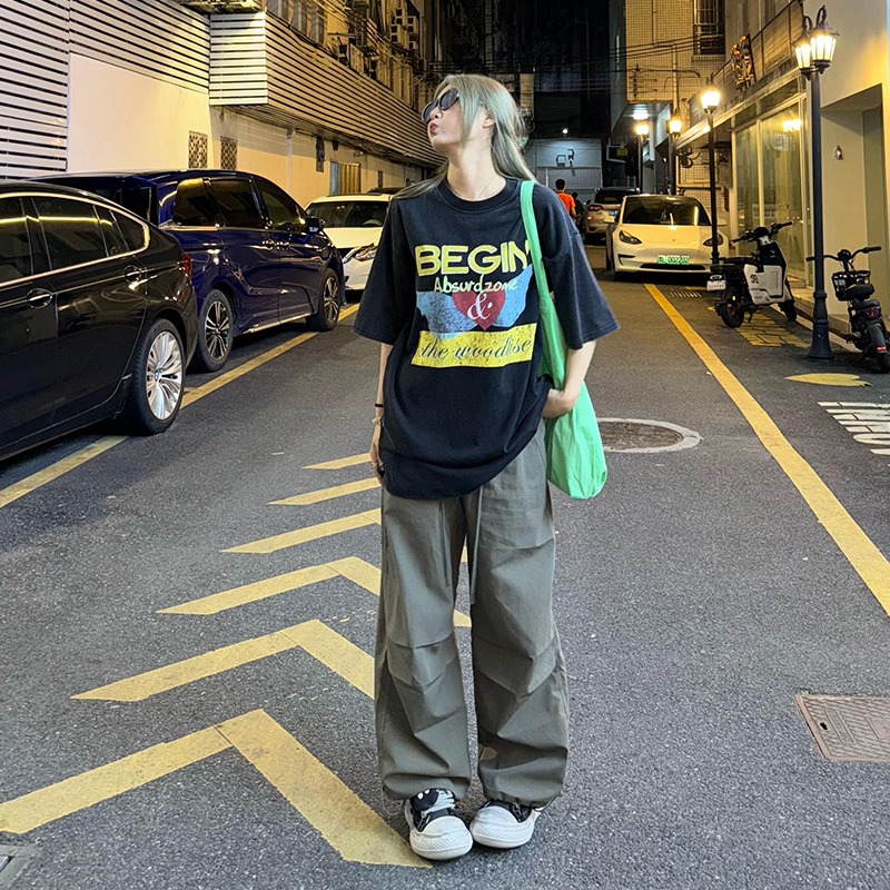 男宽松潮流阔腿百搭休闲长裤 悟空有货冬季 裤 重磅加厚褶皱工装 美式