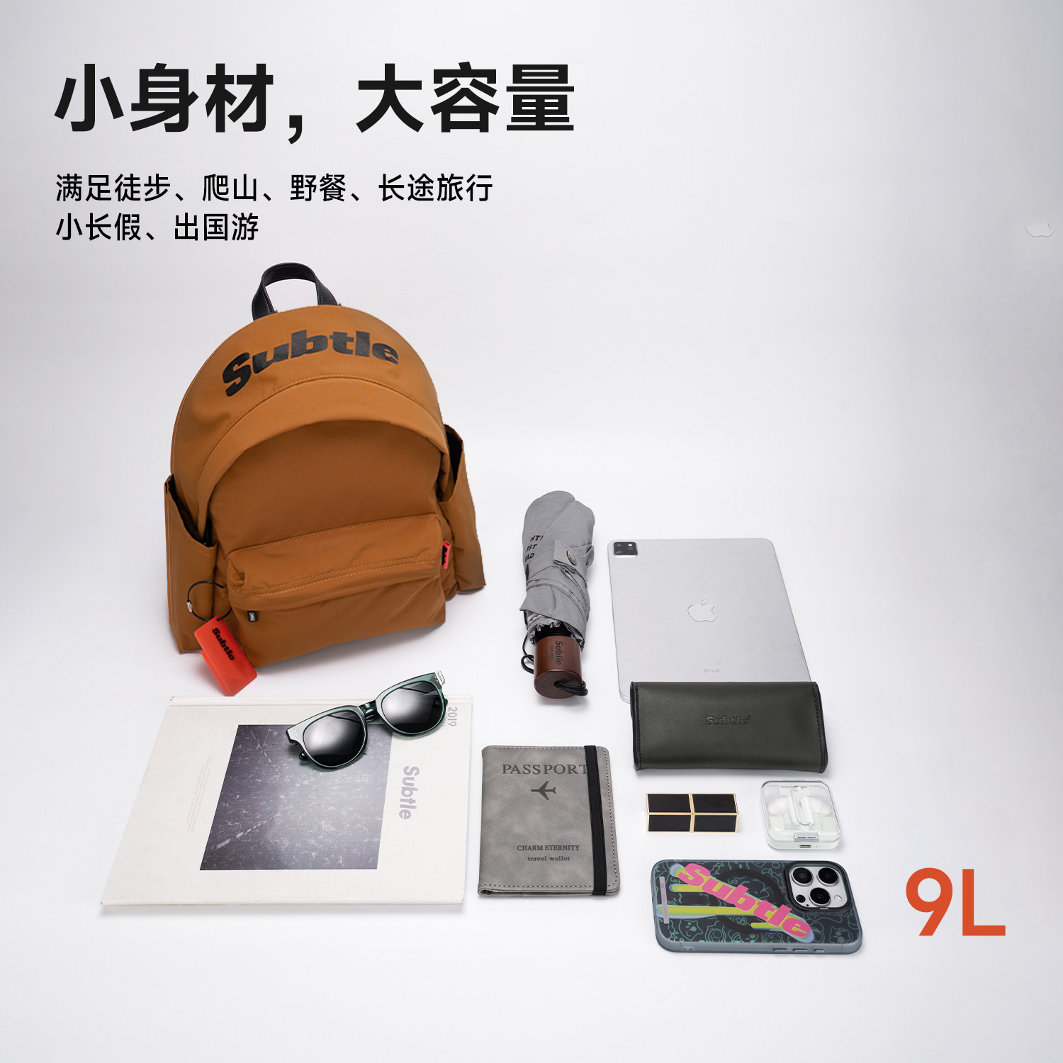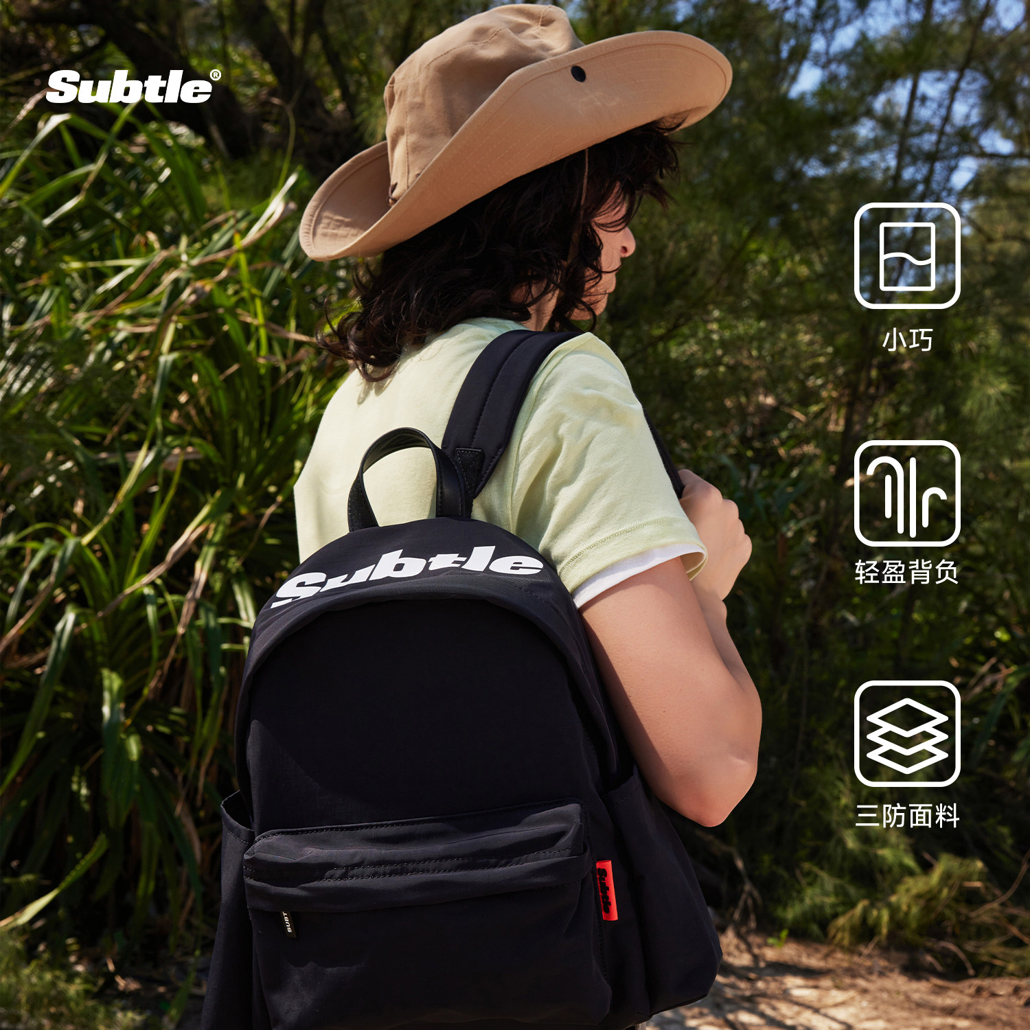 SUBTLE帽檐双肩包女小巧尼龙防水书包男户外旅游通勤轻便小众背包