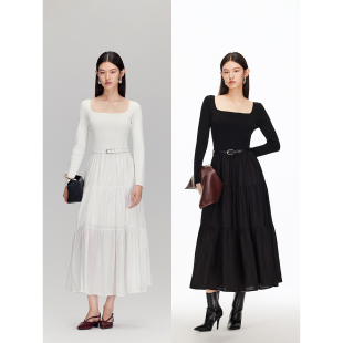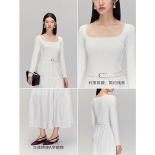 Vero Moda连衣裙女2026春夏百搭淑女风收腰拼接A字裙中长裙