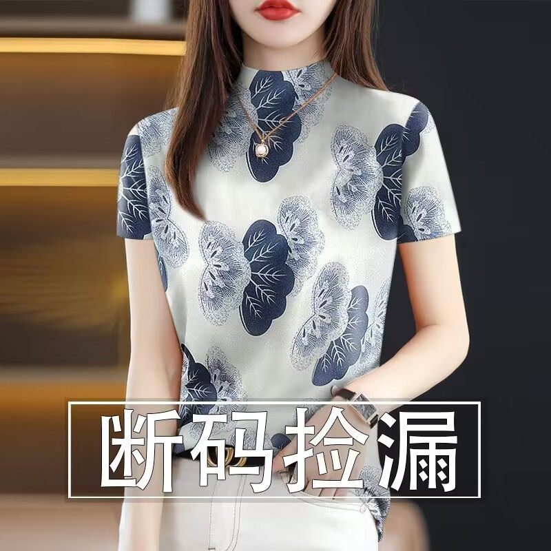 冰丝半高领T恤打底衫 百搭短袖 女2024夏季 时尚 上衣 新款 断码