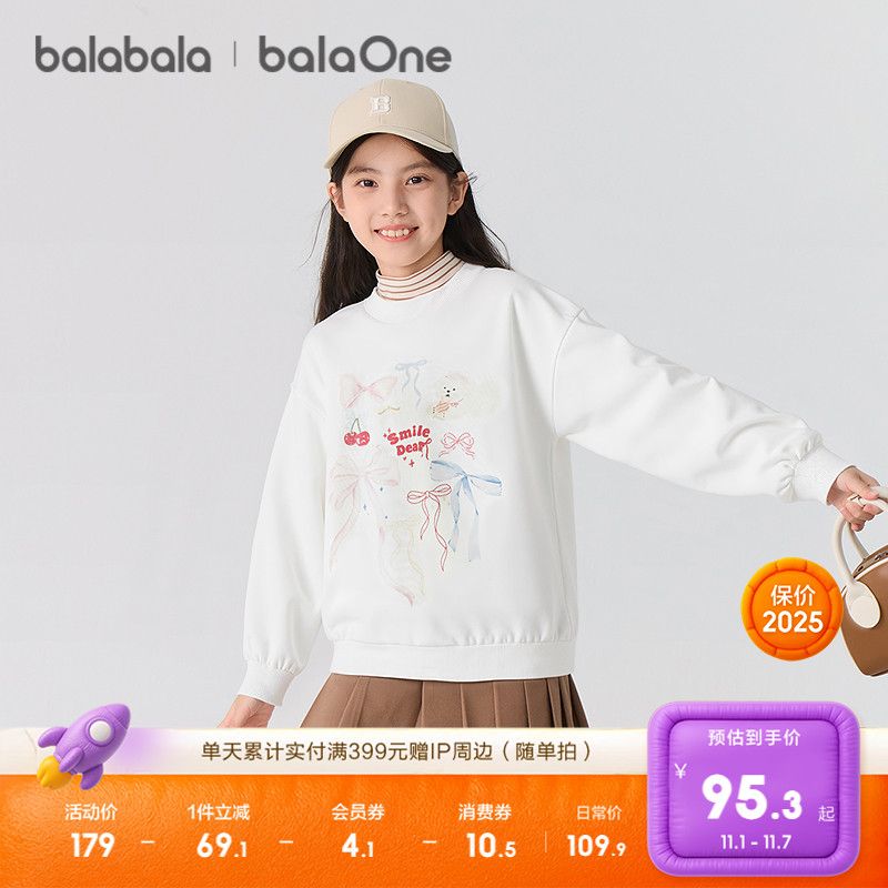 舒适百搭上衣 中大童甜美时尚 巴拉巴拉童装 女童卫衣儿童2025秋新款
