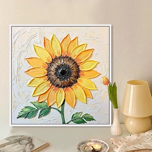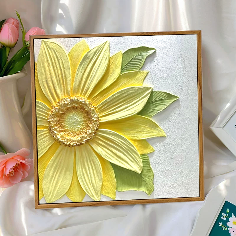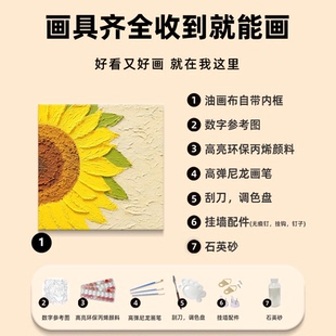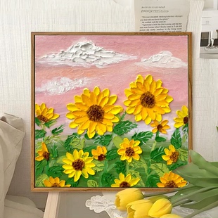 奶油风向日葵肌理画石英砂diy手工全套材料包自制装 饰画数字油画