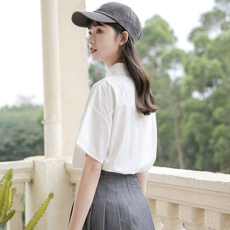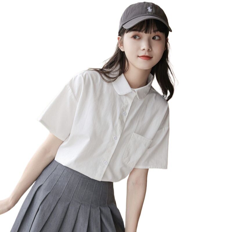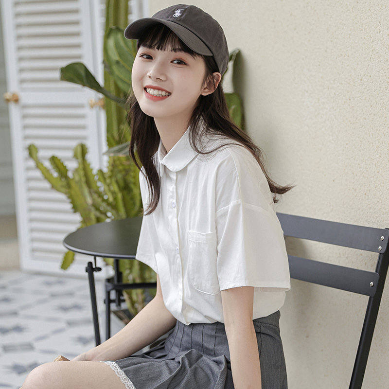 日系宽松学生制服娃娃领设计感小众薄款 新款 女夏季 白色jk衬衫