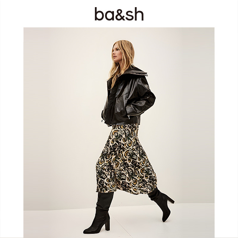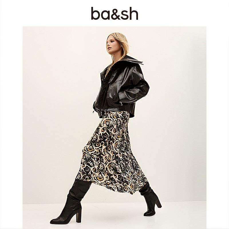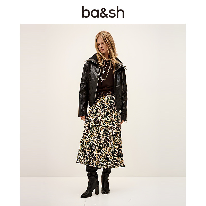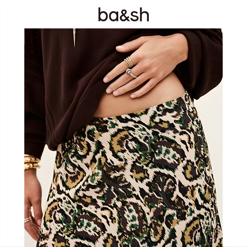 bash春季 豹纹藤蔓复古印花度假风半身裙垂感女士a字长裙1H25ONIN