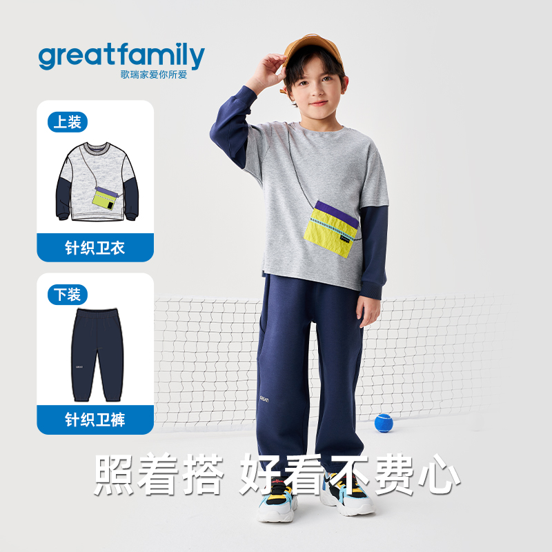 潮 百搭圆领假两件上衣休闲套头衫 男童卫衣2025秋新款 儿童时尚