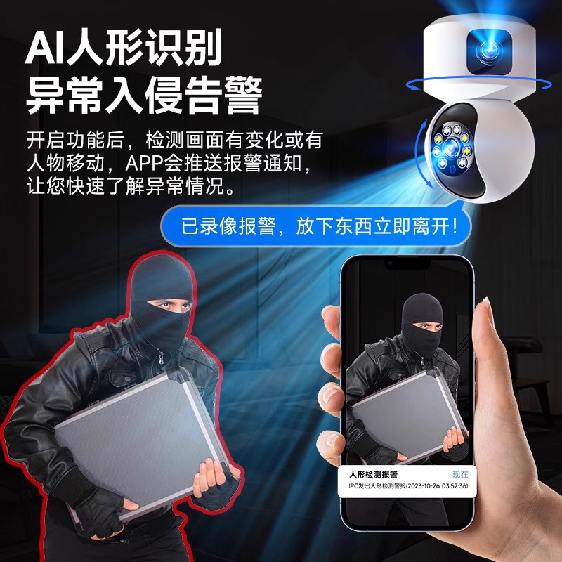 监控摄像头家用手机远程控制无需网络室内360度无死角高清摄像头