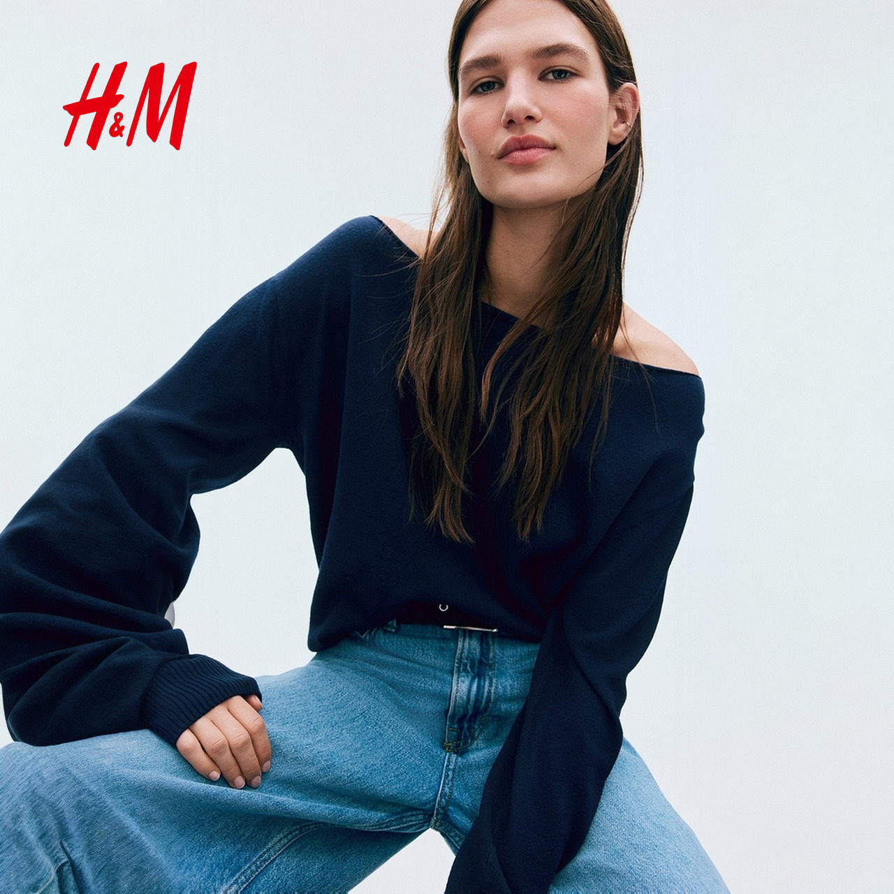 露肩毛衣落肩宽松长袖 春季 上衣1302636 毛针织衫 HM女装