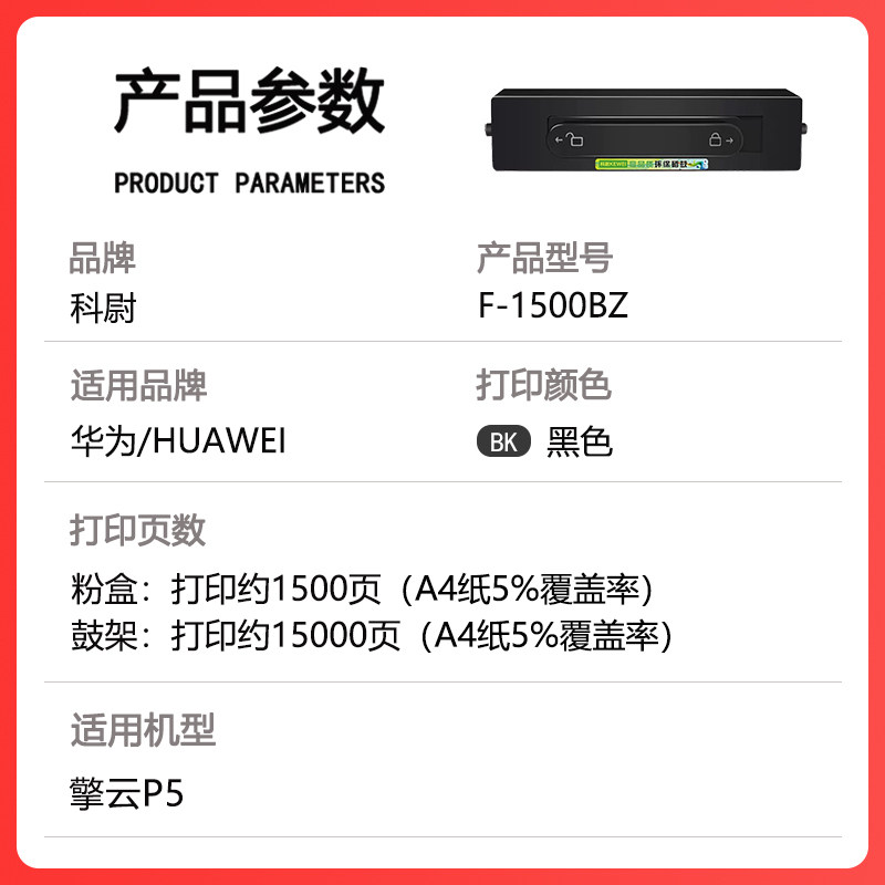 科尉适用华为擎云P5打印机粉盒HUAWEI 品质 1500BZ墨盒X LDM 1500BZ碳粉P5硒鼓激光打印机碳粉CV81Z 原装